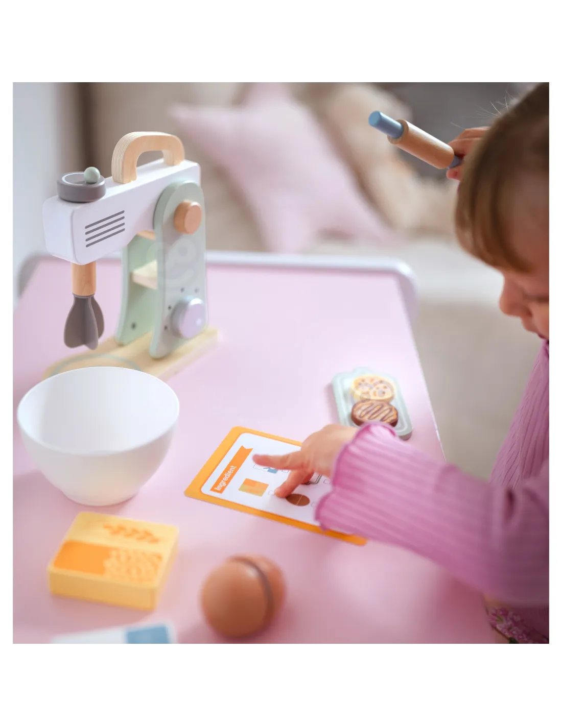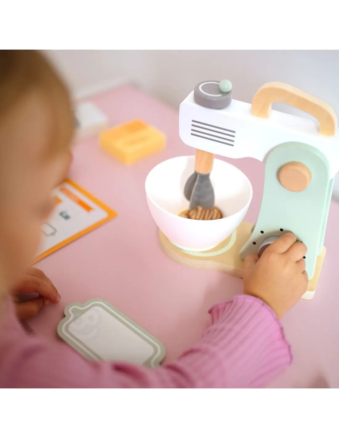Pastelinės spalvos medinis maišytuvas – puikus pasirinkimas mažiesiems kulinarijos entuziastams! Šis žavus žaislas ne tik suteiks vaikams daug džiaugsmo, bet ir leis jiems įsijausti į tikro konditerio vaidmenį. Laikas kažko saldaus! Žaidimas skatina vaizduotę, ugdo kūrybiškumą ir padeda imituoti suaugusiųjų veiksmus. Mediniai elementai yra saugūs ir malonūs liesti, o pastelinės spalvos suteikia žavesio bet kurio vaiko virtuvėlei. Tai ne tik žaislas – tai mokymasis žaidžiant! Naudodamiesi pridedamu receptu, vaikai gali išmokti skaityti virtuvės instrukcijas, sužinoti apie ingredientus, veiksmų seką ir ugdyti loginį mąstymą. Gausus priedų rinkinys praturtins bet kokį žaidimą ir paskatins vaidmenų žaidimus.
