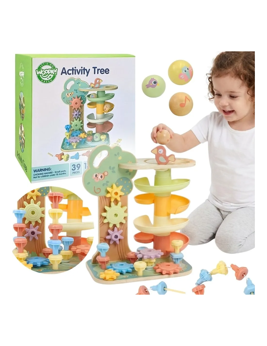 „WOOPIE GREEN“ veiklos medis – tai kruopščiai suprojektuotas ugdomasis rinkinys, apimantis iki 4 skirtingų užsiėmimų, skatinančių visapusišką vaiko, nuo 18 mėnesių amžiaus, vystymąsi. Spalvinga
