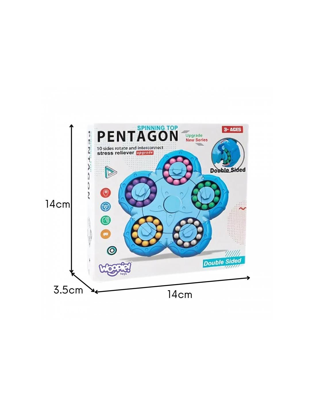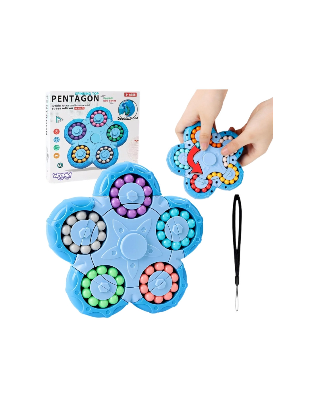 Magic Beans Puzzle Pentagonas iš prekės ženklo Woopie yra neįprastas galvosūkių žaislas, kuriame derinama antistresinės dėlionės ir lavinamojo edukacinio žaidimo funkcija. Dvigubos pusės ir spalvingi rutuliukai leidžia vaikams sukti ir judinti figūrėles įvairiomis kryptimis, kad sukurtų savo kombinacijas. Žaislas skatina susikaupimą, loginį mąstymą ir kūrybiškumą, o kartu veikia atpalaiduojančiai.