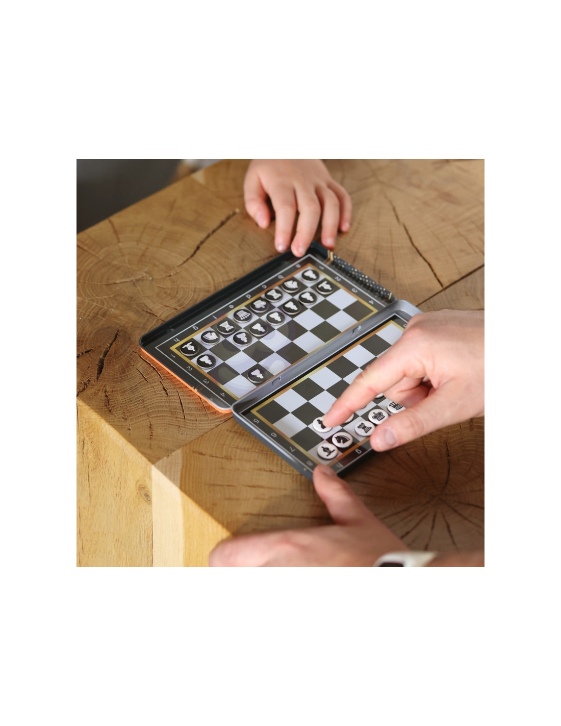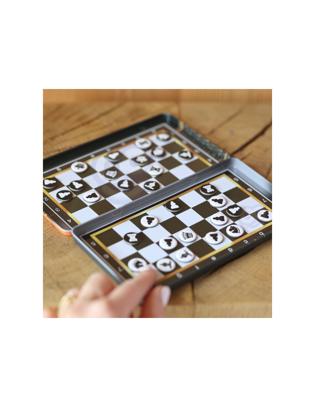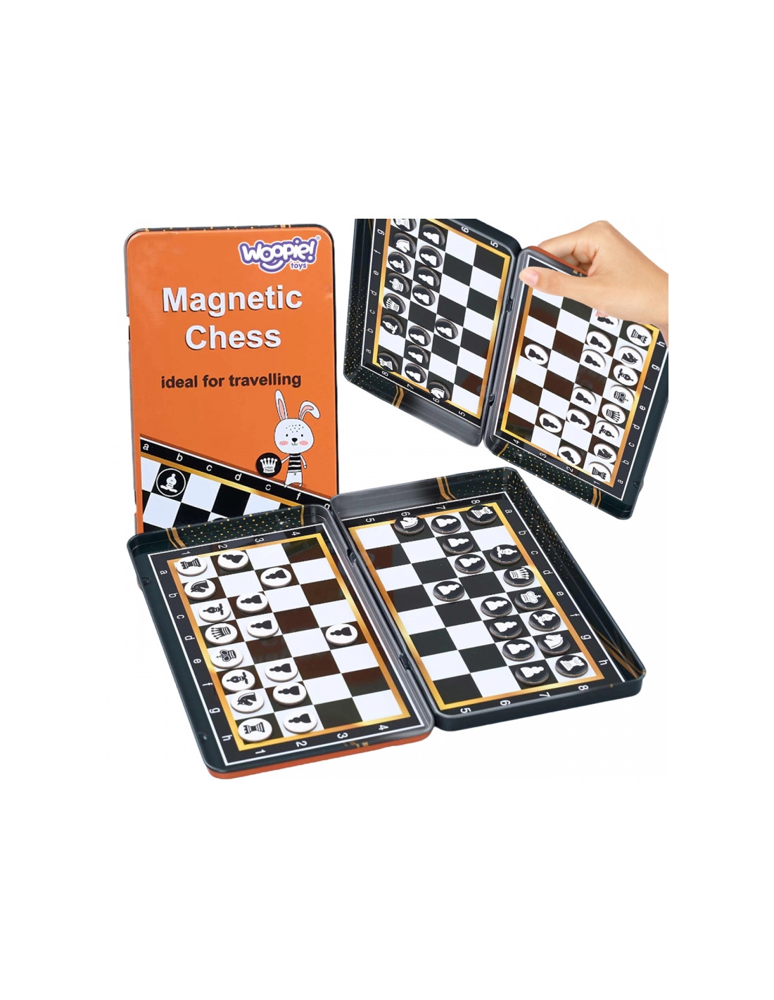 Tikriausiai visi yra girdėję apie šachmatus. Tai vienas seniausių žaidimų, kuris ir šiandien turi daugybę gerbėjų ir kurį gali žaisti tiek vaikai, tiek suaugusieji. Magnetiniai šachmatai iš Woopie yra įdomus pasiūlymas žmonėms, kurie daug keliauja arba daug laiko praleidžia toli nuo namų ir nori visada turėti galimybę griebtis mėgstamo žaidimo. Kompaktiška, lengva dėžutė telpa į bet kurią rankinę ar kuprinę, o magnetiniai pėstininkai reiškia, kad žaidimą galima žaisti bet kur, net ir sudėtingomis sąlygomis, nebijant, kad žymekliai pajudės ir bus prarasta žaidimo eiga. Metalinė dėžutė tarnauja ir kaip pakuotė, ir kaip lenta, todėl žaidimo dydis yra minimalus. Papildoma rinkinio parinktis - galimybė žaisti šaškėmis, kurios dėl savo taisyklių paprastumo puikiai tiks kaip įvadas į sudėtingesnių šachmatų pasaulį.