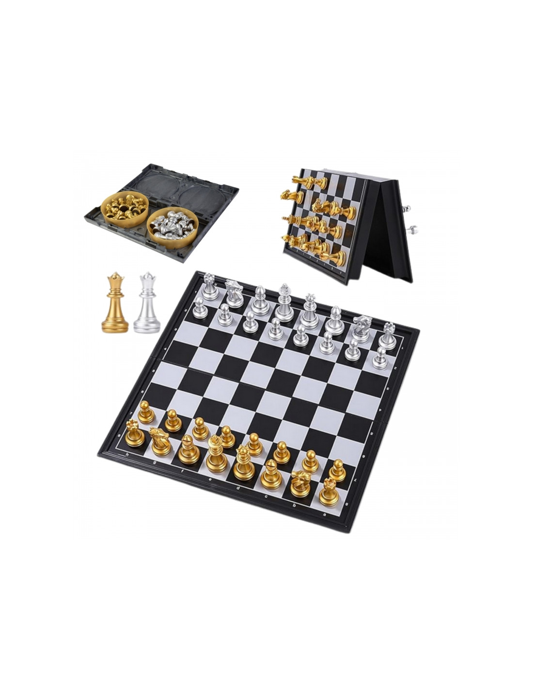 Sulankstomas magnetinis „Woopie“ šachmatų rinkinys yra elegantiškas ir praktiškas pasirinkimas klasikinių strateginių žaidimų gerbėjams, vertinantiems nešiojamumą ir estetiką. Magnetinė lenta su aukso ir sidabro elementais užtikrina figūrėlių stabilumą net transportuojant. Dėl sulankstomos konstrukcijos ir kompaktiško dydžio ji idealiai tinka tiek namams, tiek kelionėms – traukiniui, atostogoms ar lankantis pas draugus. Figūrėlės pagamintos iš lengvos, patvarios medžiagos su metaline apdaila – aukso ir sidabro – kuri suteikia rinkiniui elegancijos ir prestižo. Sulankstymo mechanizmas leidžia visą lentą sumažinti iki kompaktiško dydžio, todėl ją lengva laikyti ir transportuoti, nerizikuojant, kad figūrėlės subyrės.