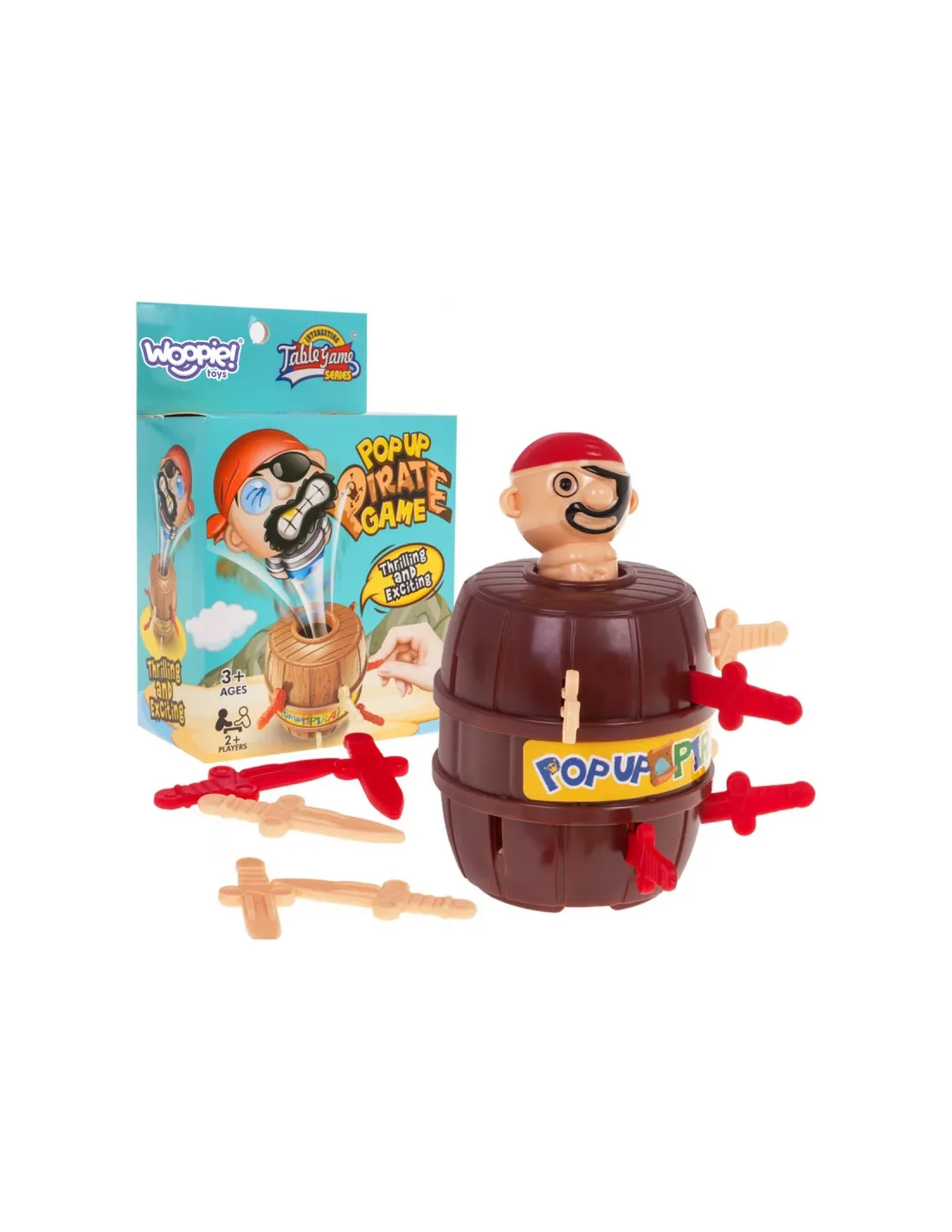 Piratas statinėje iš WOOPIE yra arkadinis žaidimas , kuris yra puikus pasiūlymas tiek jauniausiems žaidėjams nuo 3 metų, tiek visoms šeimoms. Pridėtinė vertė yra galimybė groti tiek 2 žmonėms, tiek grupėse, tiek solo. Viskas, ką jums reikia padaryti, tai įdėti piratų figūrą į statinę ir kiekvienam žaidėjui ar komandai duoti 6 kardus. Žaidimas susideda iš strategiškai ir atsargiai įkišti kardą į pasirinktas statinės skylutes, išvengiant pirato įgėlimo. Ašmenys, palietę piratą, privers jį iššokti iš statinės, o tai reiškia žaidėjo pralaimėjimą. Šis labai priklausomybę sukeliantis iššūkis lavina loginį mąstymą, tikslumą ir kantrybę, todėl kiekvienas žaidimas tampa nepamirštama patirtimi. Patirkite varžybų džiaugsmą kartu ir tuo pačiu tobulinkite savo įgūdžius.