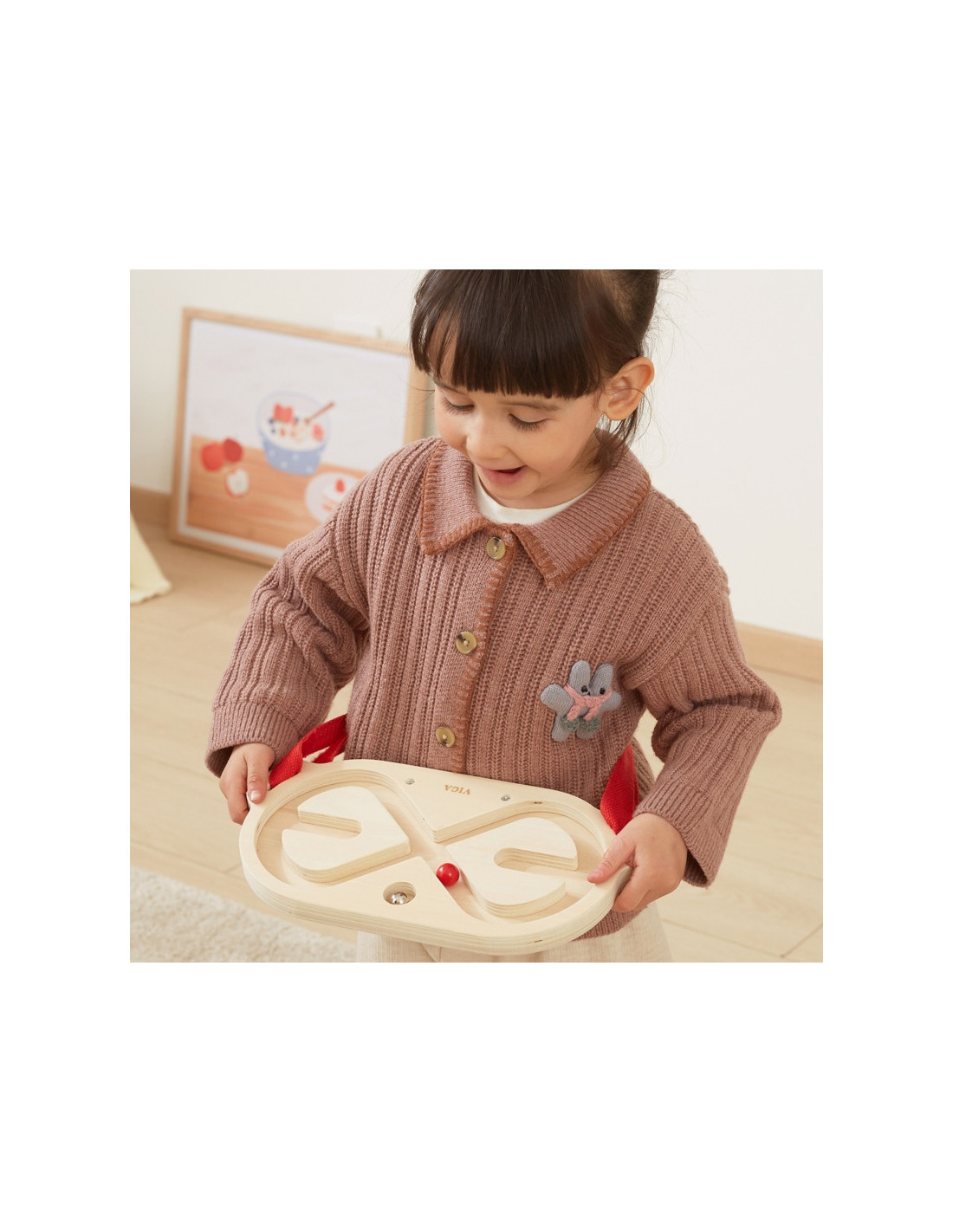 VIGA kūno balansavimo labirinto rinkinys yra novatoriškas judesio žaidimas, įtraukiantis visą kūną, lavinantis koordinaciją ir pusiausvyrą. Su dviem mediniais labirintais ir skirtingo svorio kamuoliukais žaidimas tampa įdomiu iššūkiu vaikams. Žaidėjai uždeda labirinto diržą ant juosmens, krūtinės, kojų ar rankų, tada judina kūną, kad kamuolys judėtų ir nukreiptų jį per labirintą. Žaislą galima naudoti atskirai arba varžytis poromis, o tai suteikia žaidimui dinamikos ir integruoja dalyvius.