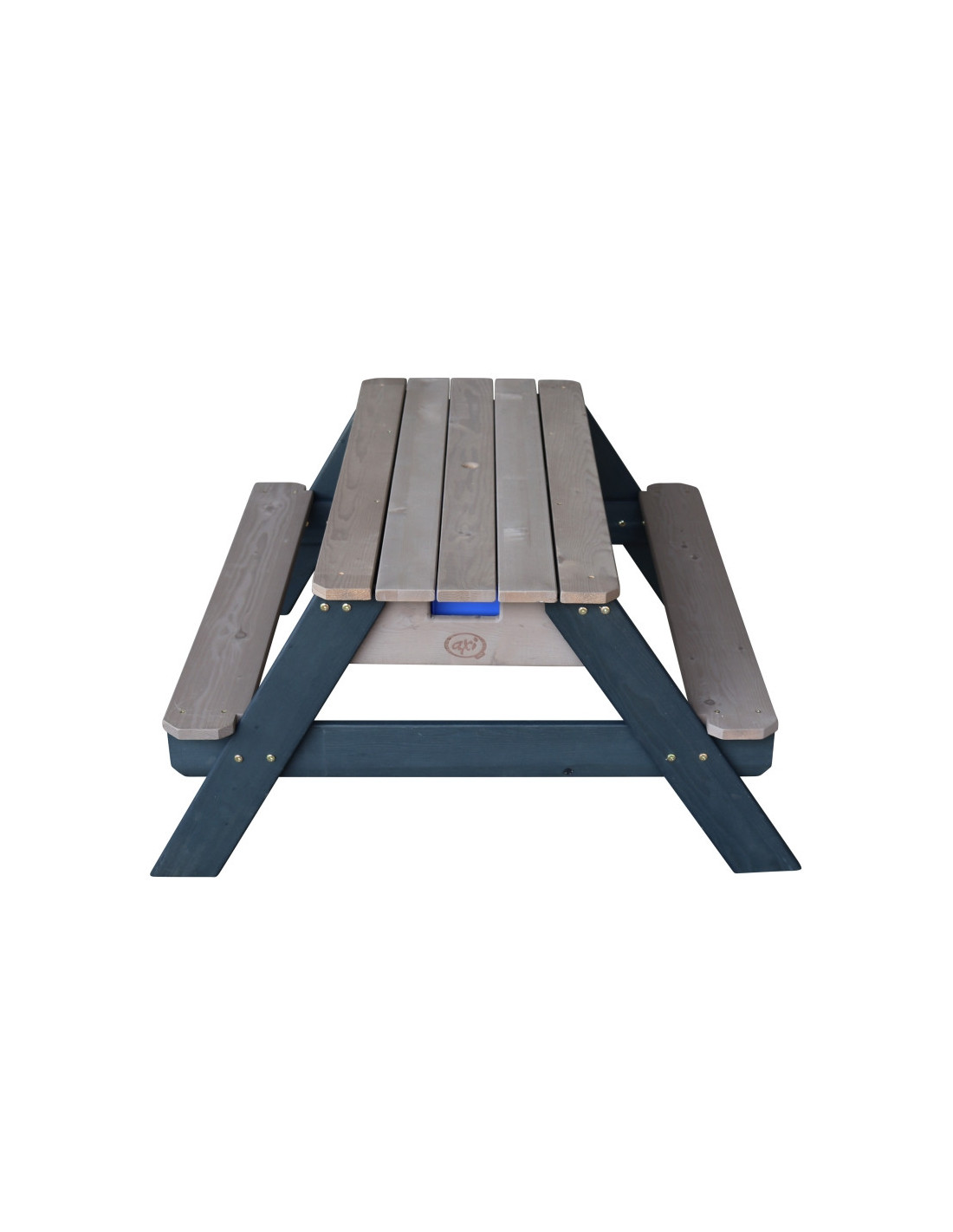 Axi Nick iškylų stalas vaikams labai pradžiugins jūsų vaikus. Vaikai turi kur patogiai sėdėti, žaisti ir dažyti. Mažieji turės patogų kampelį tik sau. Ir jei jiems nuobodu ramiai sėdėti, nuėmus stalviršį, rinkinys virsta smėlio dėže ar vandens stalu. Turime dvi kameras, pritaikytas tiek smėliui, tiek vandeniui. Dėl to, viena vertus, vaikai gali statyti smėlio pilis, kita vertus, gali žaisti su žaislinėmis valtimis. Stalas puikiai tiks sodui, terasai ir balkonui.