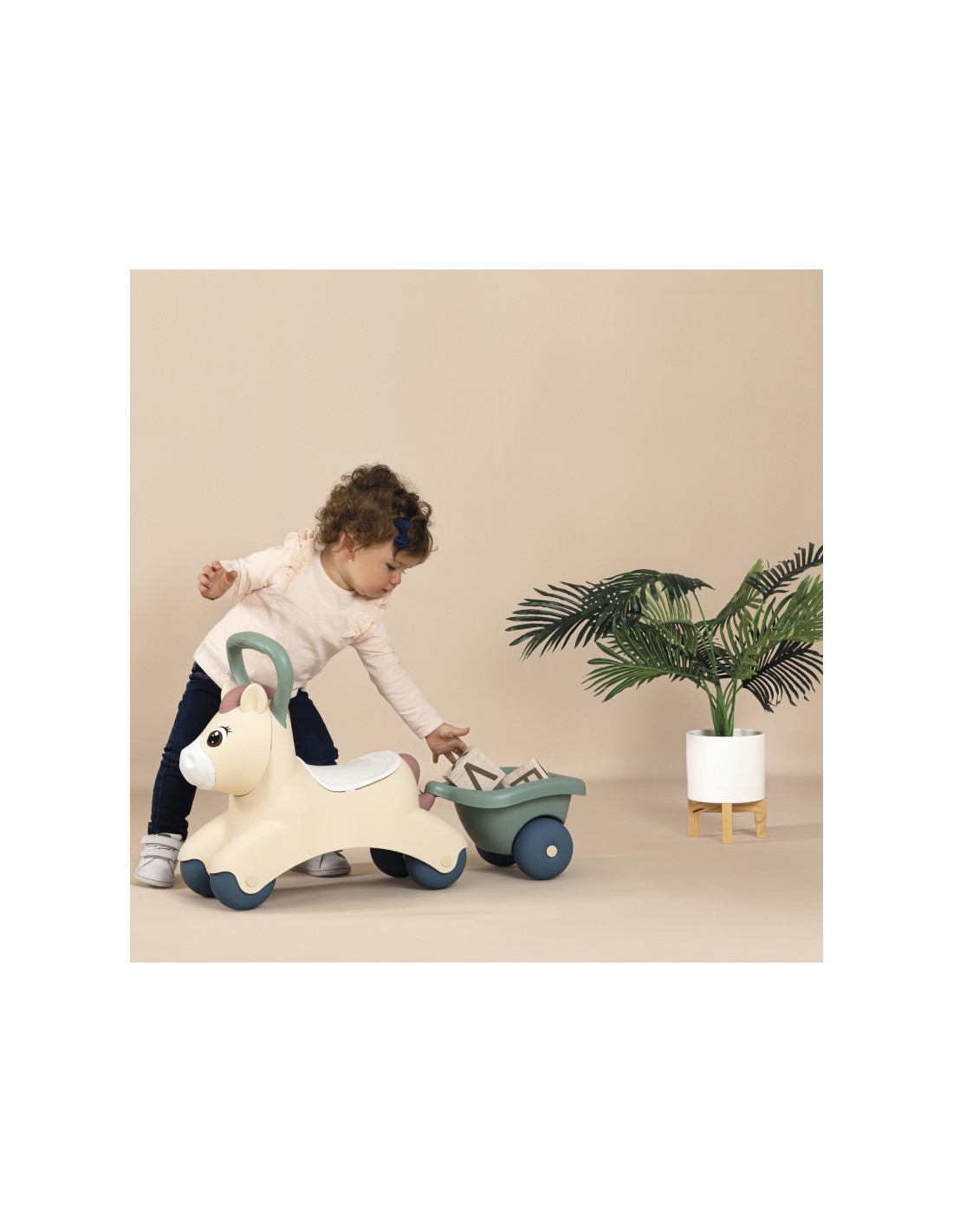 - - jeździk Pony Ride-On Kucyk z wygodnym siedziskiem, uchwytem oraz przyczepką do przewożenia drobiazgów,