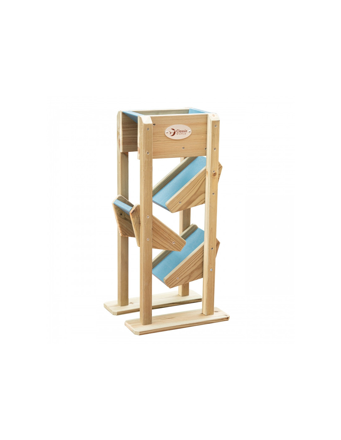 CLASSIC WORLD medinė smelio čiuožykla yra aukštos kokybės žaislas , kuris puikiai papildys jūsų vaiko smelio dėžę, taip pat ir žaidimų aikšteles švietimo įstaigose. Ją sudaro piltuvėlis viršuje, į kurį vaikas pila smelį, kuris vėliau teka žemyn trimis mažomis čiuožyklomis. Šios medinės čiuožyklos naudojimas yra puiki sensorinė veikla vaikams, kuri naudinga lavinant smulkiąją motoriką .