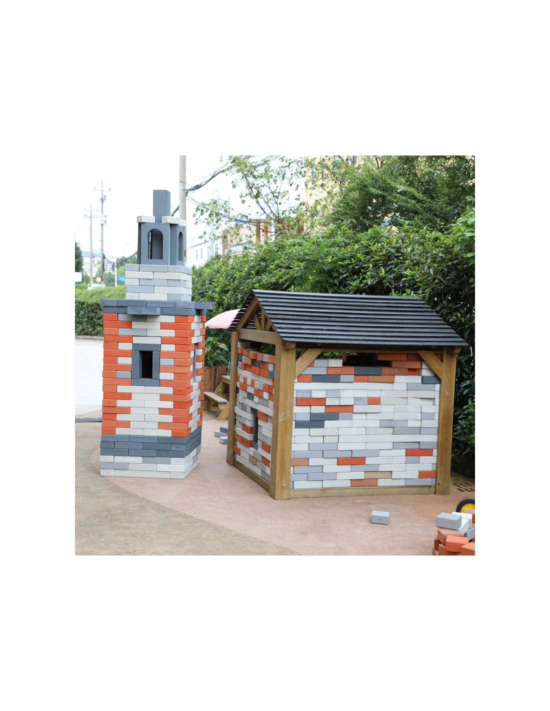 - Architektūrinės konstrukcijos: Vaikai gali naudoti minkštas kaladėles įvairiems architektūriniams statiniams, pavyzdžiui, namams, bokštams, tiltams ir pilims, statyti. Jie gali kurti savo projektus arba imituoti pažįstamas konstrukcijas. Tai lavina jų konstravimo įgūdžius, erdvinį suvokimą ir problemų sprendimo įgūdžius.