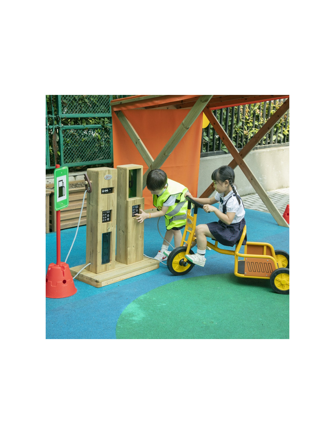„CLASSIC WORLD 2-in-1“ įkrovimo stotelė yra universalus įrenginys, kurį galima naudoti tiek degalams, tiek elektromobiliams įkrauti. Vaikai gali paimti įkrovimo laidą, prijungti jį prie savo triračių ir įkrauti juos prieš išvykdami. Funkcijas, tokias kaip degalų papildymas, techninė priežiūra ir mokėjimas, galima imituoti pasukant funkcijų mygtuką.