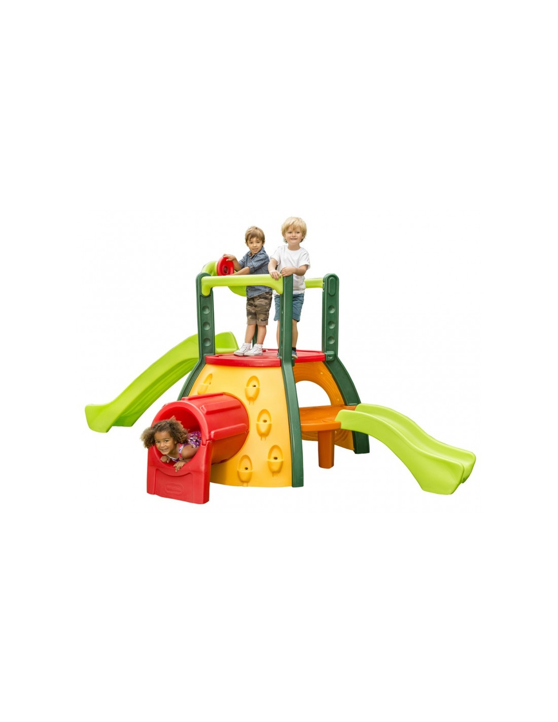 Amerikiečių kompanijos "Little Tikes" "Super Monkey Grove" siūlo nesibaigiantį laipiojimą, slydimą čiuožykla ir slėpynių žaidimą. Puikiai tinka namams ir sodui. Tinka grupiniams žaidimams, lavina vaiko fizinį pasirengimą. Puikus žaislas jūsų vaikams! Iššūkis ne tik karštoms dienoms! "Super Monkey Grove" yra puikus sodo žaislas, skirtas mažiems vaikams! Kupini energijos, vaikai ras daug linksmybių - laipioti, čiuožti žemyn šia didele čiuožykla. Vaikai gali lipti ant uolos sienos ir žiūrėti iš didžiulės platformos. Dvi čiuožyklos pritaikytos įvairaus amžiaus vaikams. Nuostabus nuskaitymo tunelis veikia kaip "pabėgimo liukas" slaptų misijų metu, o didžiulis fortas susipina kaip slėptuvė.