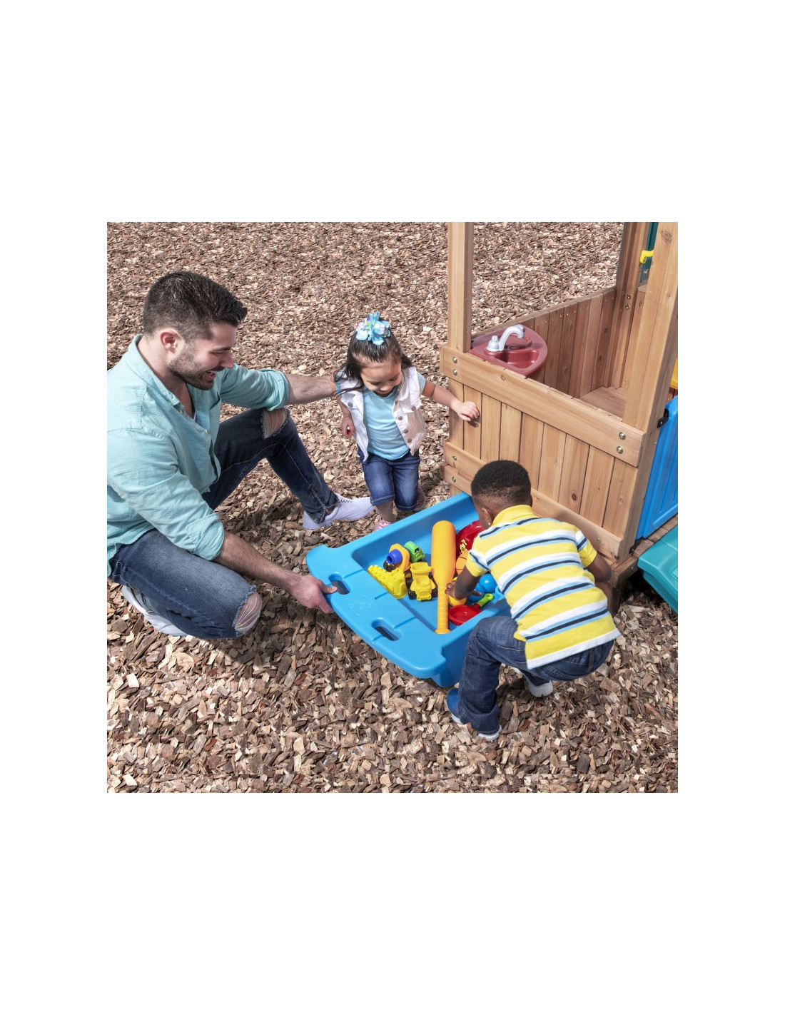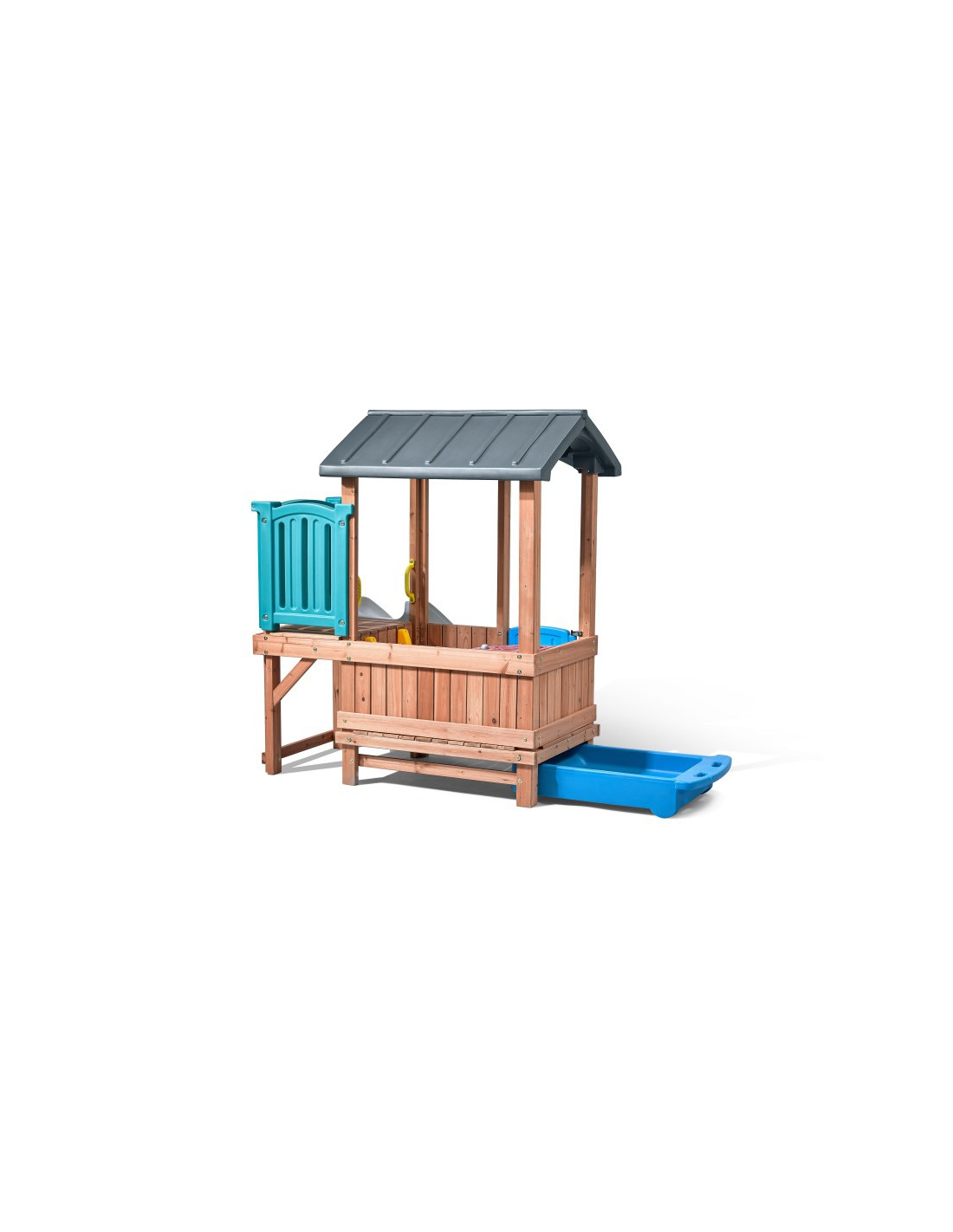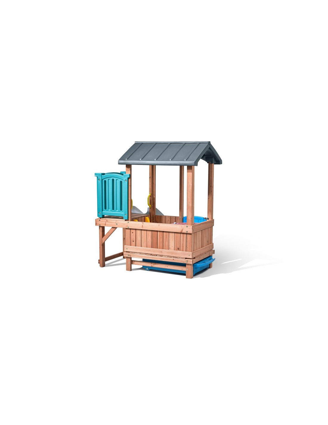 Šis žavus žaidimų namelis ir čiuožykla atveria begales galimybių! Tai gali būti pilis, trobelė, piratų laivas ar bet kas, ką jie nori įsivaizduoti! Šis stilingas kiemo žaidimų rinkinys pagamintas iš mišrių medžiagų, kad atrodytų unikaliai. Konstrukcija, daugiausia pagaminta iš medžio, sukuria klasikinį įvaizdį. Spalvingos plastikinės detalės yra patogios vaikams ir tarnaus valandų valandas! Šis medinis ir plastikinis žaidimų namelis leis mažiesiems linksmintis visą dieną!