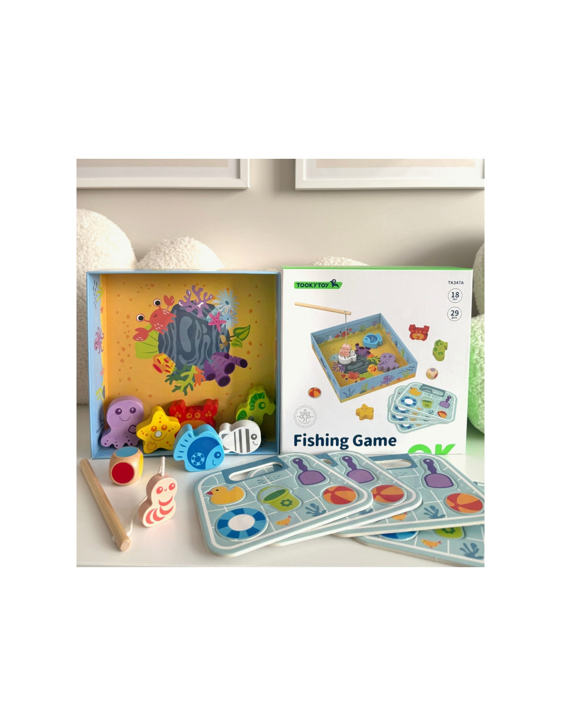 TOOKY TOY prekės ženklo žvejybos rinkinys yra puikus vaiko mėgstamo žaislo ir paprasto, pirmojo žaidimo derinys. Galite žvejoti iš jūros arba žaisti smagų bingo, kuriame pakaitomis padėsite sugautus jūros gyvūnus ant lentos.
