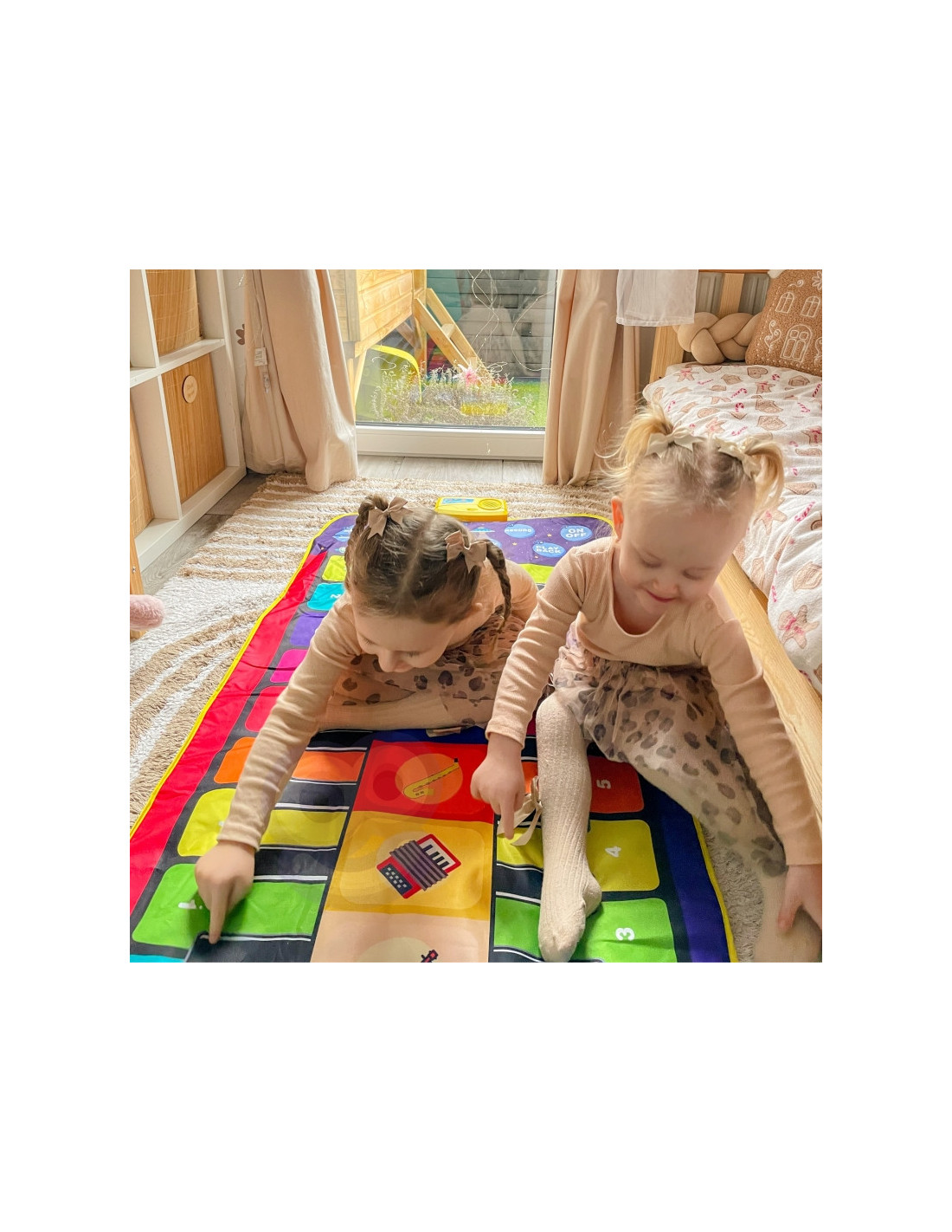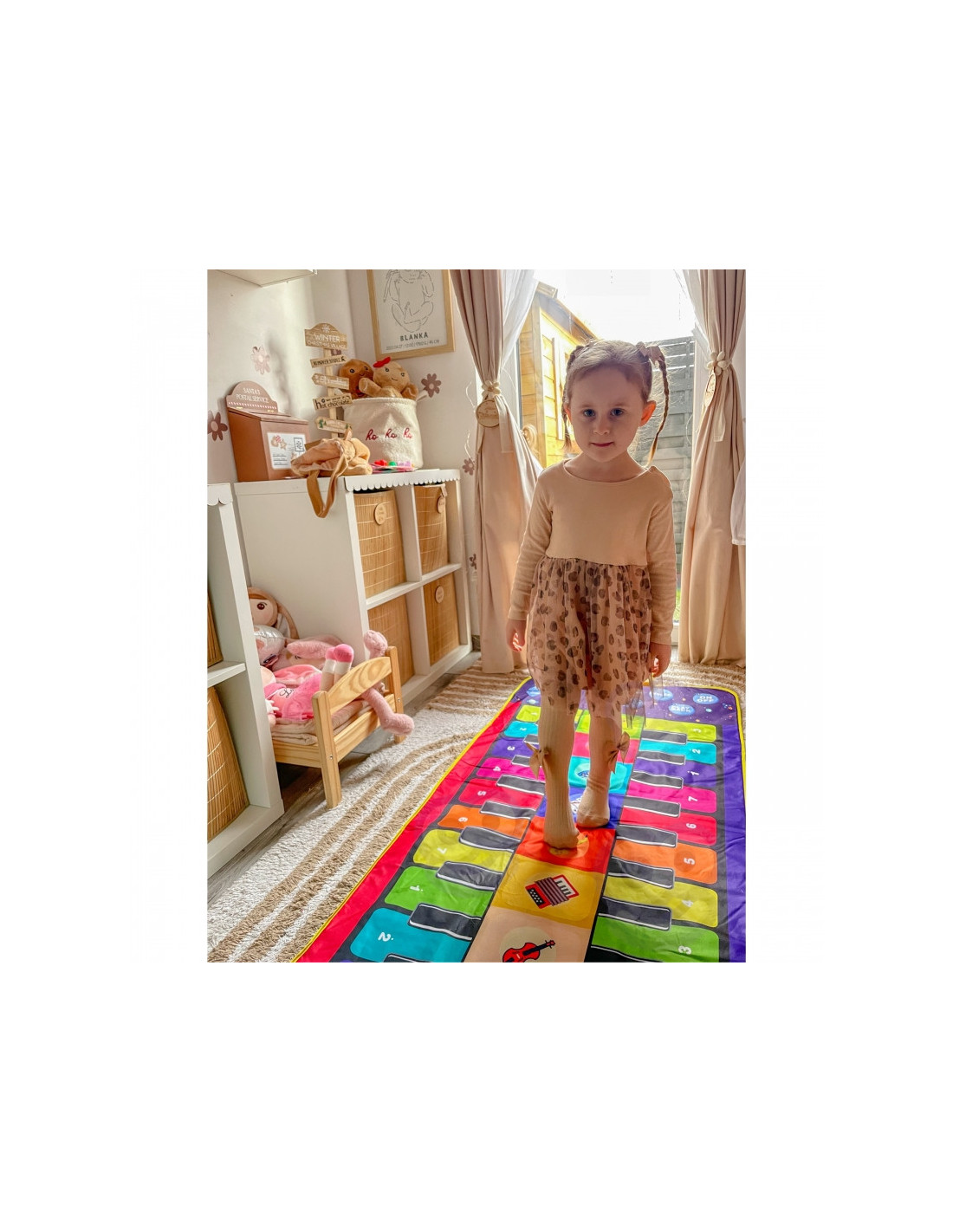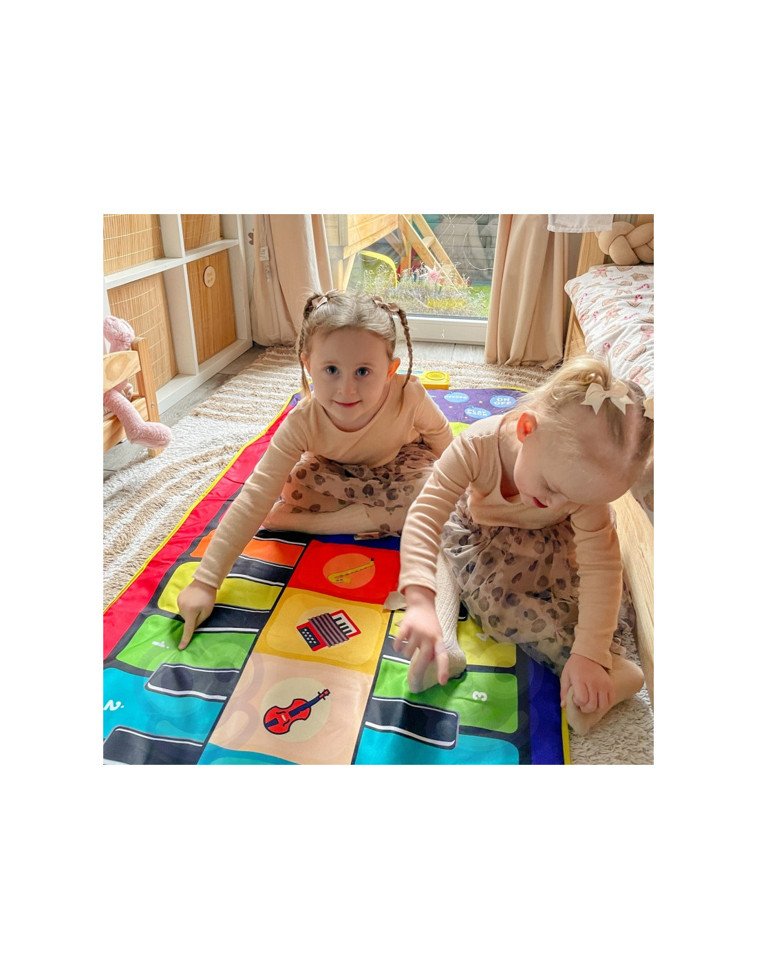 - - Kilimėlyje yra 10 pianino klavišų ir 8 skirtingų instrumentų piktogramos, kurias galima įjungti ir sukurti unikalias garso kompozicijas. Tai žaislas, skatinantis atrasti muzikinius gebėjimus.