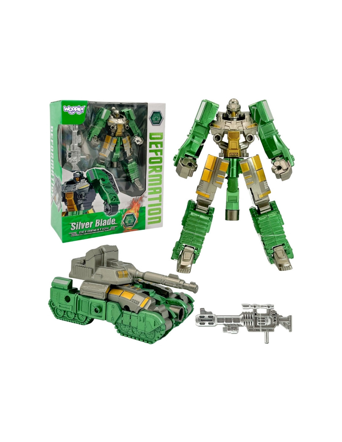 Pasiruoškite neįtikėtinam nuotykiui su „Woopie“ transformuojančiu robotu „Silver Blade“! Šis nepaprastas žaislas pradžiugins kiekvieną mažąjį mašinų, karinių transporto priemonių ir robotų gerbėją! Šis įspūdingas modelis vos keliais paprastais žingsniais iš galingo tanko virsta bauginančiu robotu kareiviu. Dėl lengvos transformacijos ir futuristinio dizaino šis robotas nukels jūsų vaiką į didvyriškų mūšių ir begalinių žaidimo galimybių pasaulį. Atraskite transformacijos galią ir pasinerkite į veiksmą! Savybės: