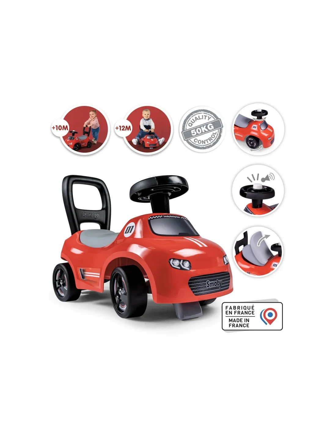 Važiuojamasis automobilis sukurtas atsižvelgiant į mažiausius vaikus – specialūs išsikišimai apsaugo nuo atsitiktinio pasvirimo į priekį ar atgal, o ergonomiškas atlošas veikia kaip rankena, todėl vaikui lengviau vairuoti transporto priemonę.