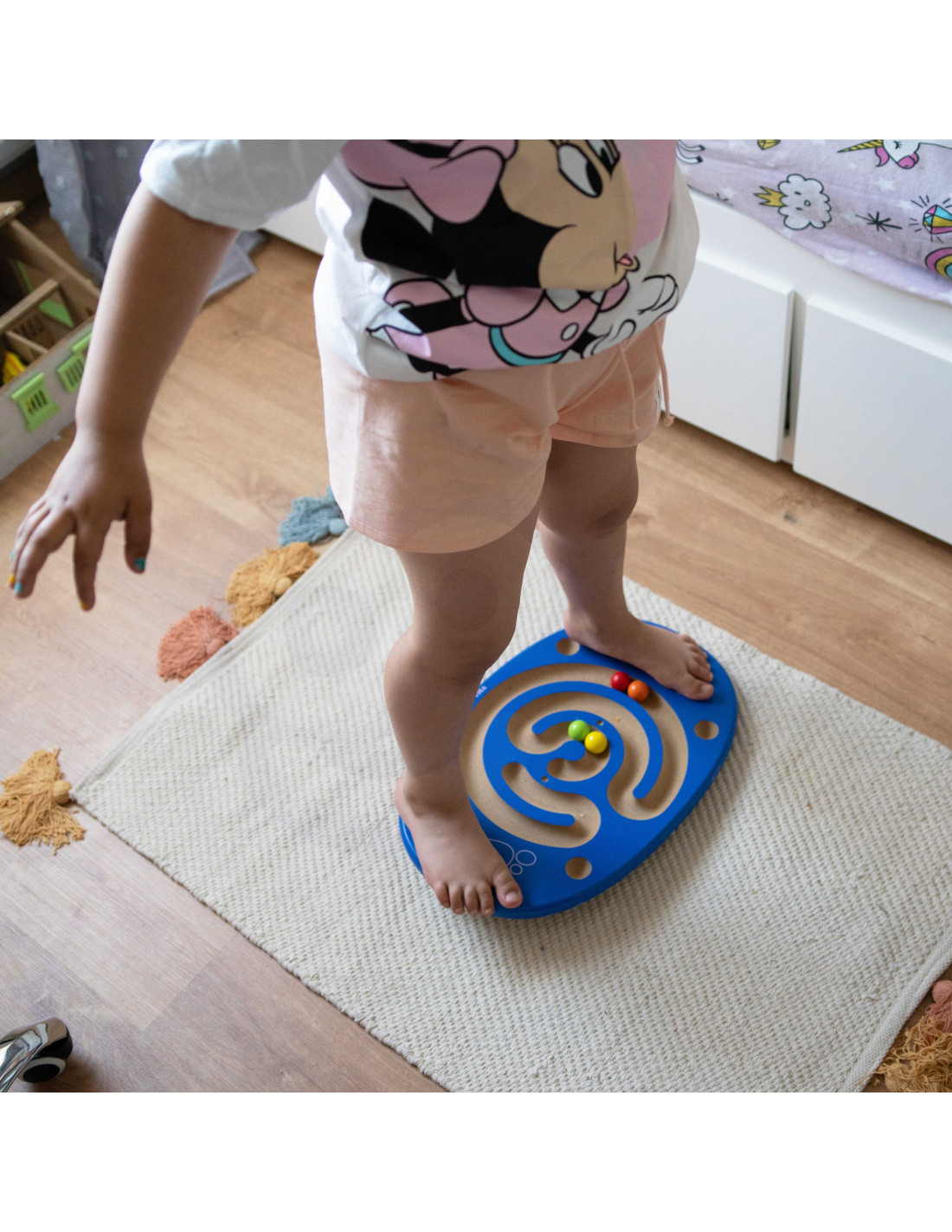 • - vaiko užduotis yra išlaikyti pusiausvyrą lentoje, kad išlaikytų pusiausvyrą ir nugabentų spalvotą kamuoliuką į savo vietą,