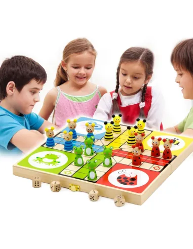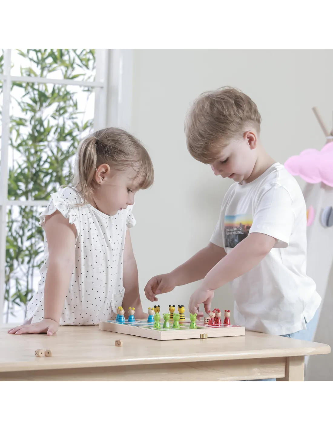 Stalo žaidimas „Ludo“ yra gerai žinomas vaikams ir suaugusiems visame pasaulyje. „Viga“ sukūrė visiškai naują versiją, kuri sužavės mažuosius. Rinkinį sudaro keturi kauliukai, stalo žaidimo dėžutė ir šešiolika gražiai pagamintų figūrėlių, vaizduojančių varles, bites, boružes ir drugelius.