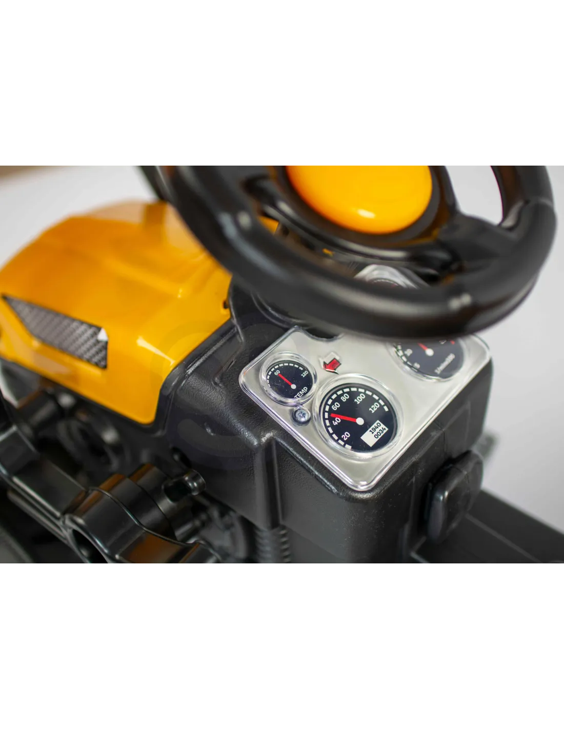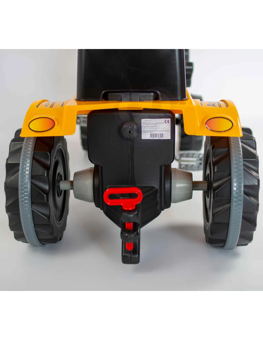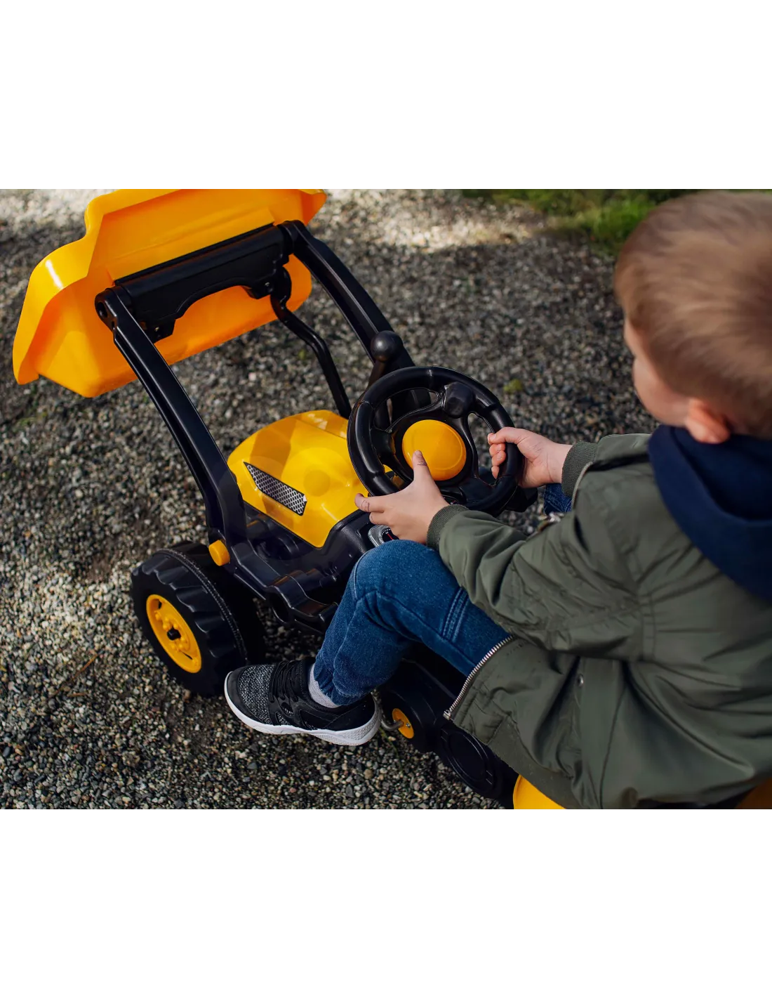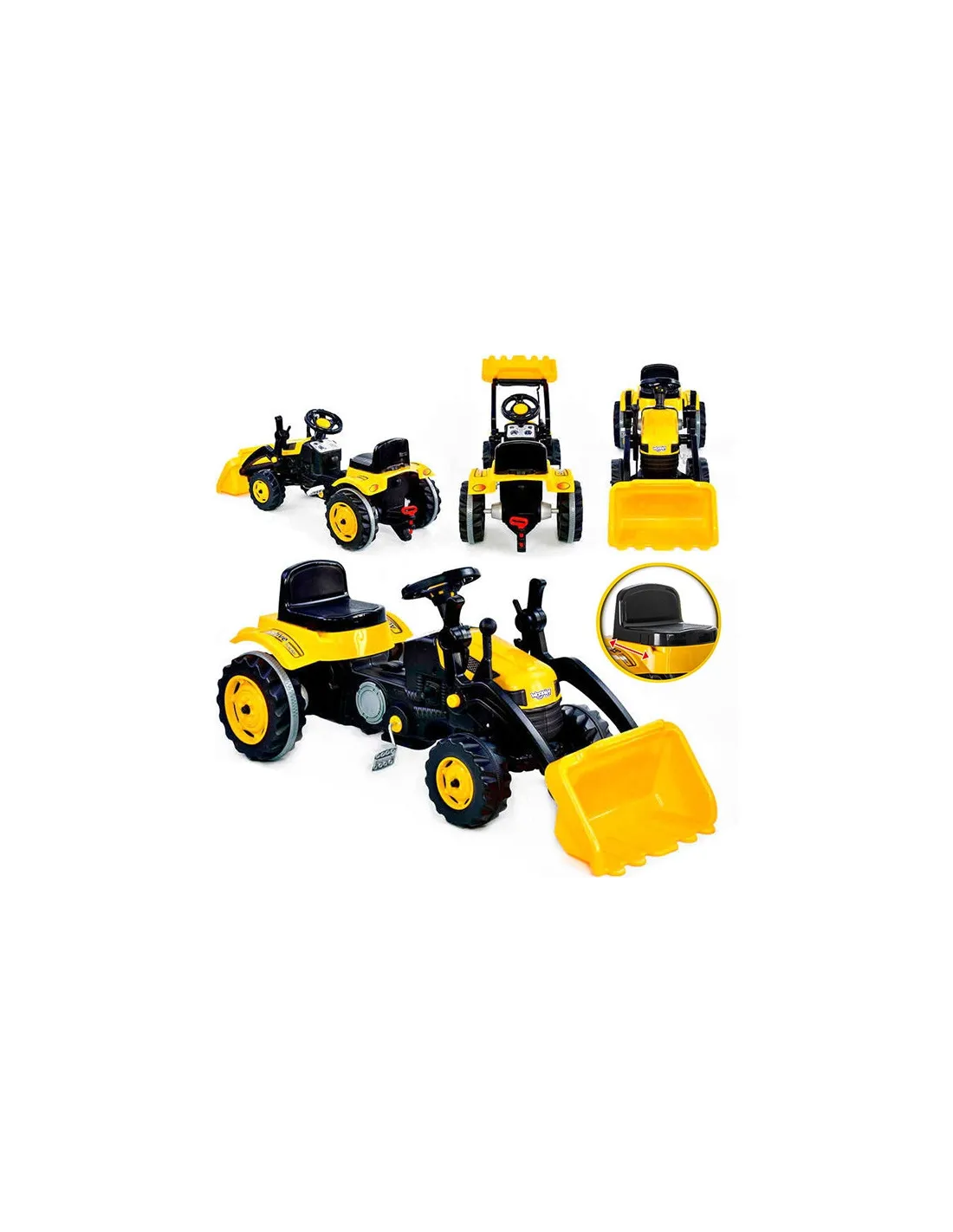 Šis geltonas pedalinis traktorius su žaisliniu sunkvežimiu yra puiki įžanga į pedalines transporto priemones. Jis išmokys mažuosius, kaip varyti mašiną ir kaip ją vairuoti, kad pasiektų kelionės tikslą! Papildoma atrakcija – buldozerio funkcija . Vaikai gali krauti savo mėgstamus žaislus į kibirą ir pasiimti juos su savimi kelyje. Produktas pagamintas iš aukščiausios kokybės , aplinkai nekenksmingų medžiagų, visiškai saugus vaikų sveikatai .