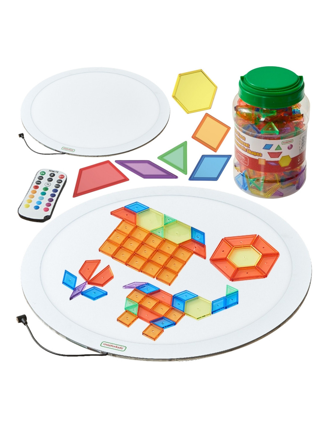 MASTERKIDZ Apvalus LED šviesos skydelis įvairiaspalvis + Montessori mozaikos kaladėlės 140 vnt.