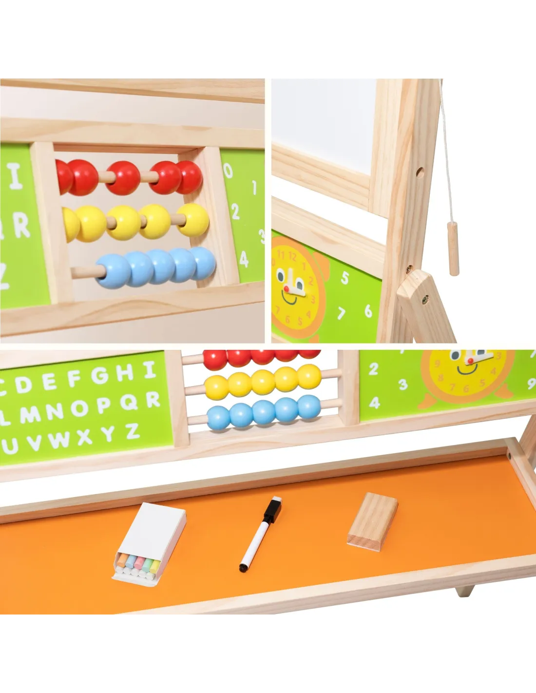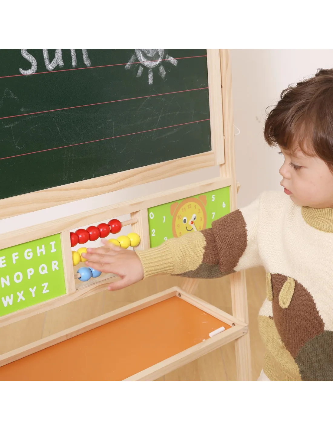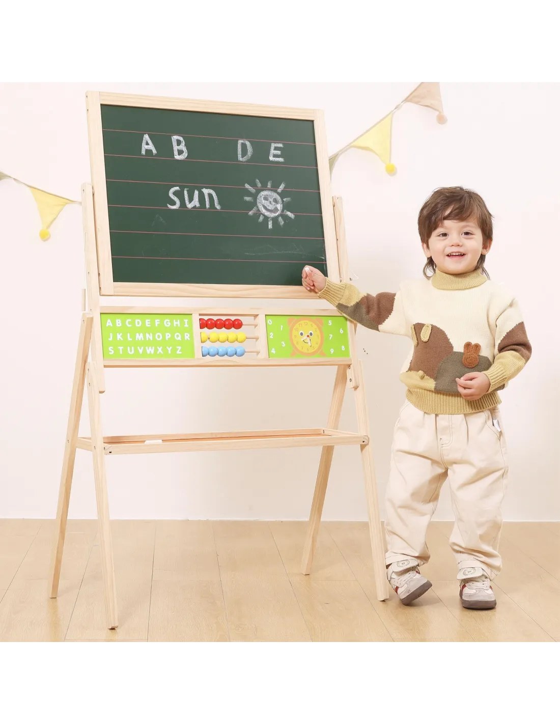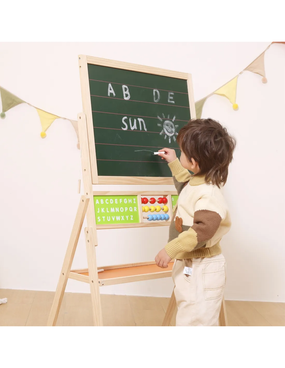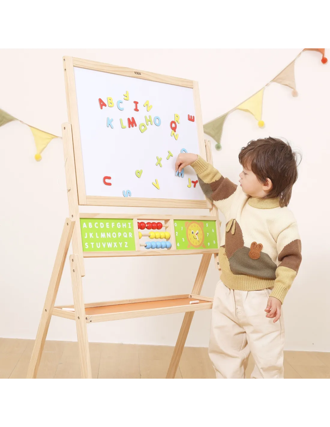 Discover the magical world of learning and creativity with the wooden educational board from Viga , which will transform your child's room into a true studio for a little genius! This double-sided structure is not only a space for artistic displays with chalk and marker, but also a comprehensive development center equipped with an abacus, clock, and alphabet. Thanks to the magnetic surface and extensive accessories, every day becomes a new, fascinating adventure with letters and numbers. The sturdy wooden construction and secure locks guarantee that play will be not only captivating but also safe for every toddler over 3 years old . This is an investment that combines the carefree joy of creation with the natural acquisition of key academic skills!