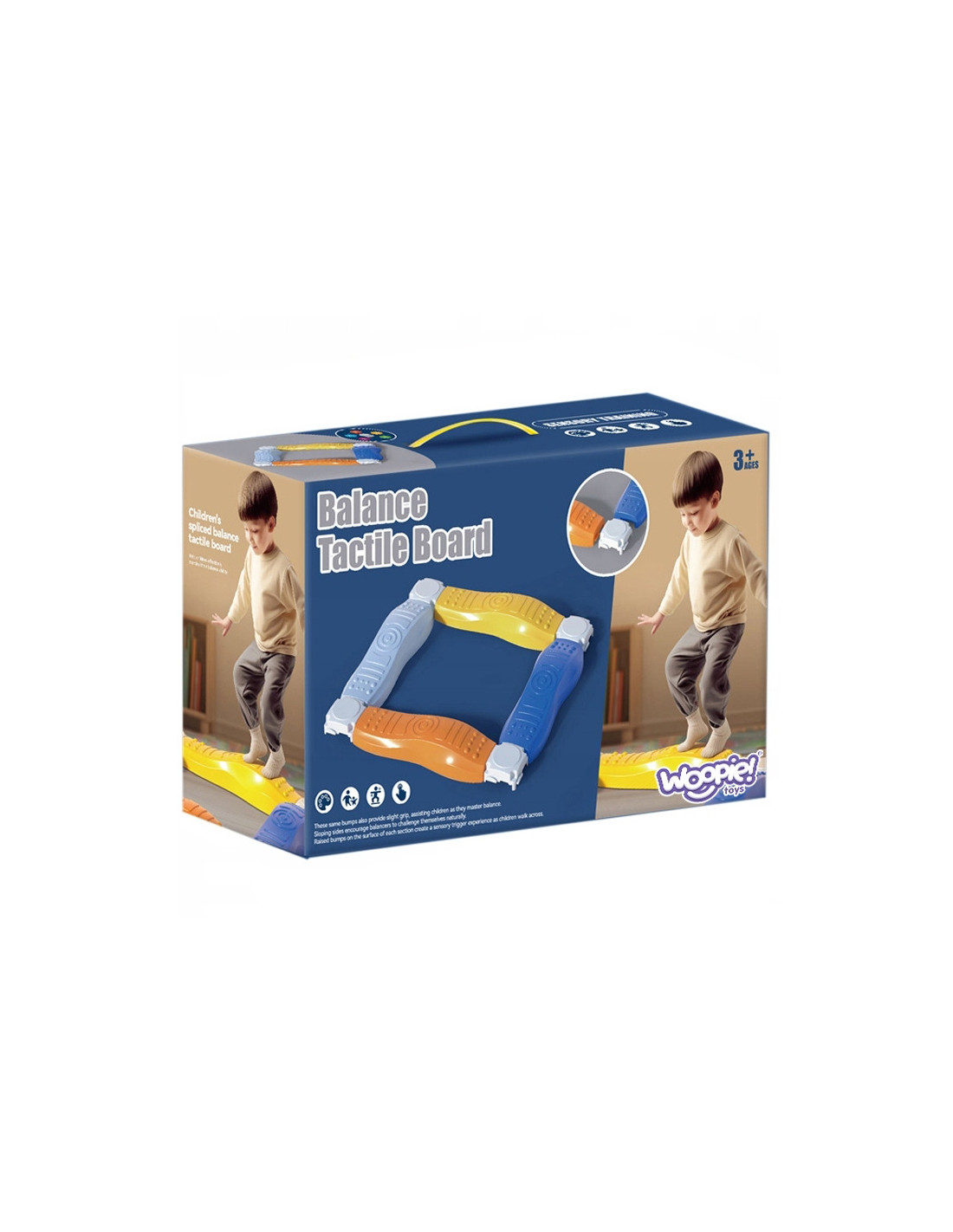 Wprowadź dynamiczną i rozwijającą zabawę do pokoju Twojego dziecka dzięki modułowej ścieżce sensorycznej od marki Woopie! Ten innowacyjny tor balansowy to nie tylko świetna rozrywka, ale przede wszystkim narzędzie wspierające rozwój równowagi, koordynacji ruchowej i integracji sensorycznej. Elementy w żywych, kontrastujących kolorach łatwo łączą się ze sobą, pozwalając na tworzenie rozmaitych kształtów i ścieżek. Wypustki na powierzchni i nachylone boki zapewniają stymulację dotykową stóp i zachęcają do naturalnego doskonalenia balansu. Idealna zabawka do aktywnej zabawy w domu i poza nim!