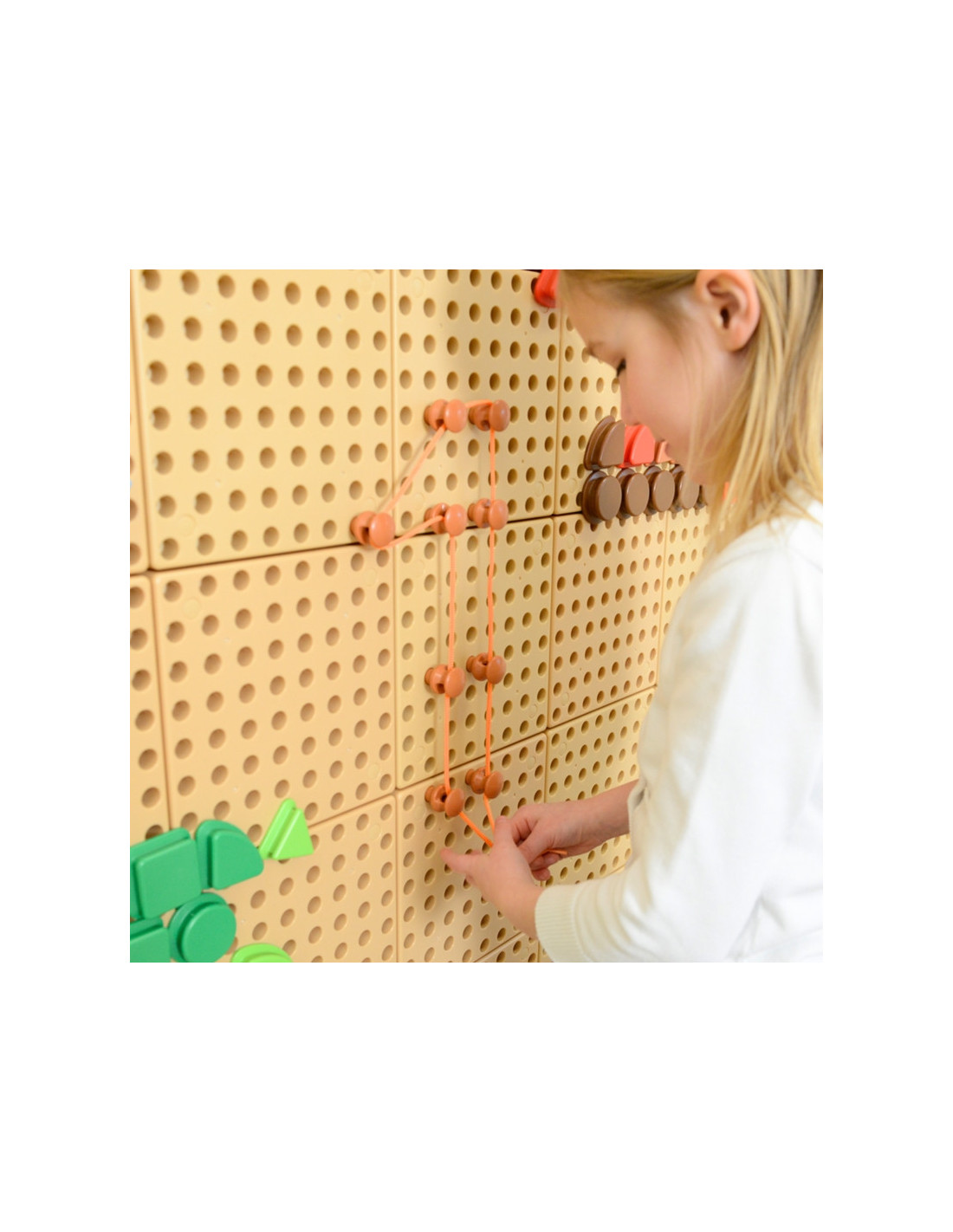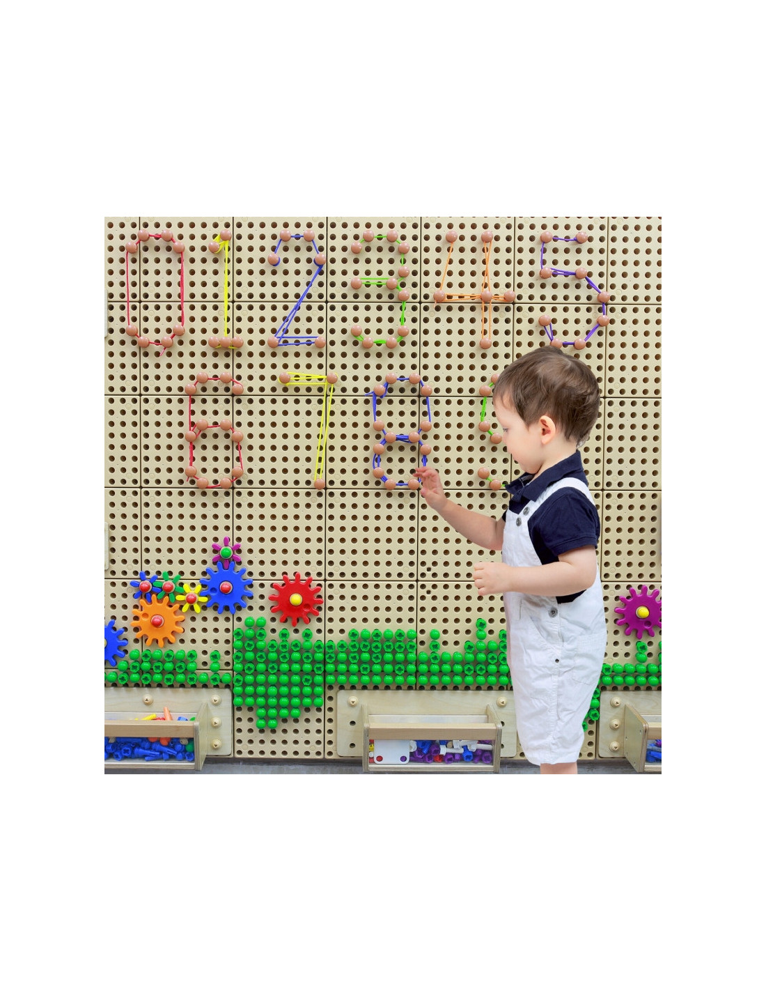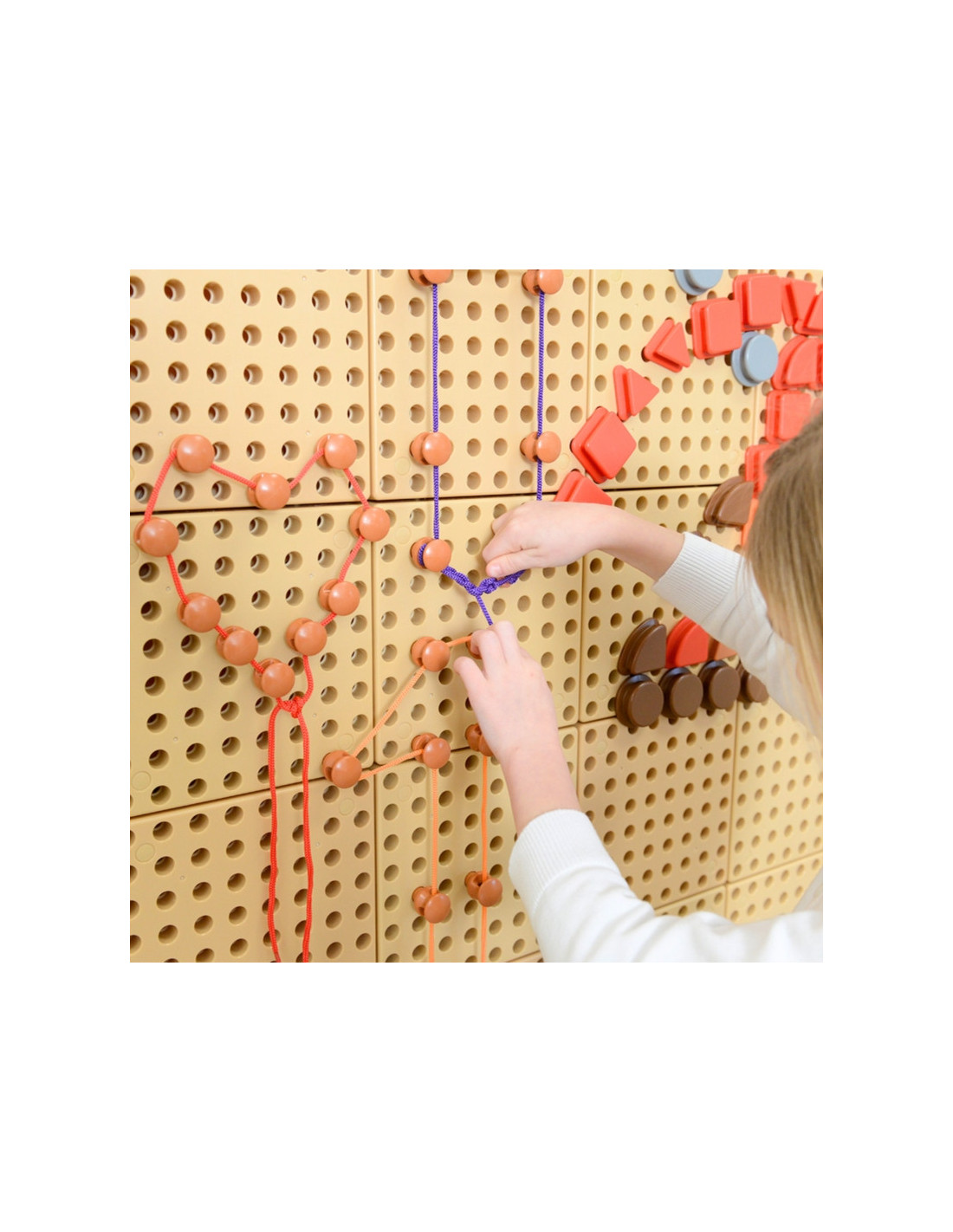 Zestaw 200 kołków i 60 kolorowych sznureczków, które pozwalają na kreatywną zabawę. To świetny element, dzięki któremu Twoje dziecko nie tylko w piękny sposób ozdobi swoją tablicę i stworzy niesamowite rysunki, ale również poprawi zręczność. Zabawa poprawia motorykę dziecka, zdolność logicznego myślenia, a także odkrywczość.
