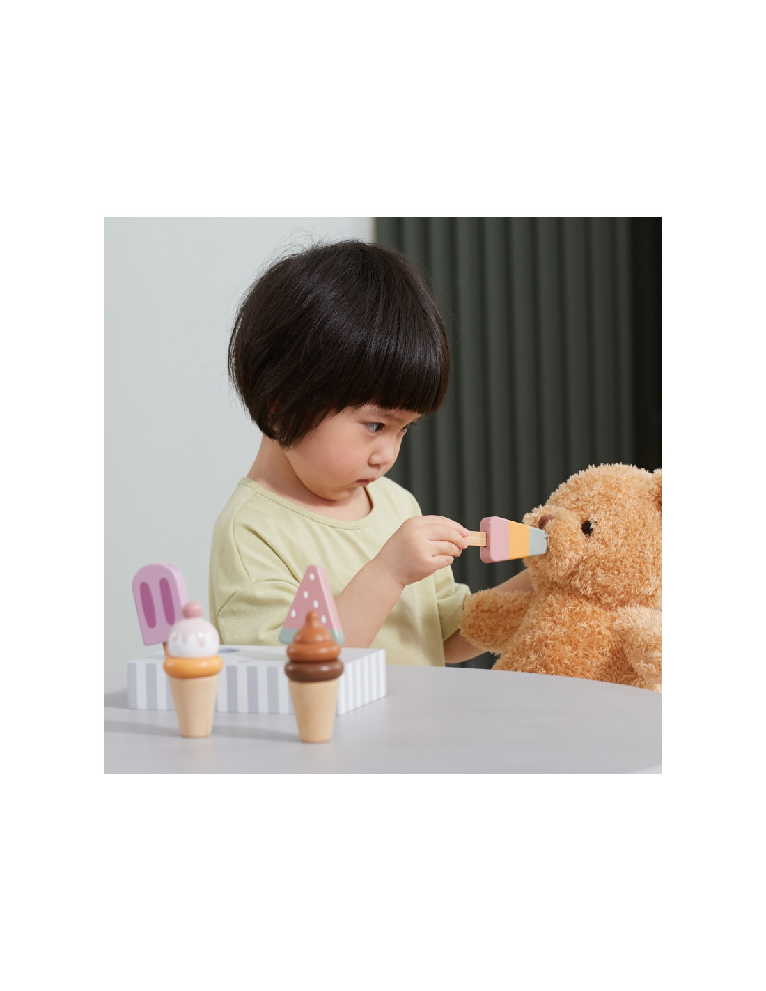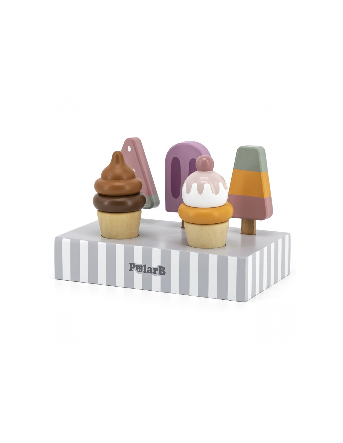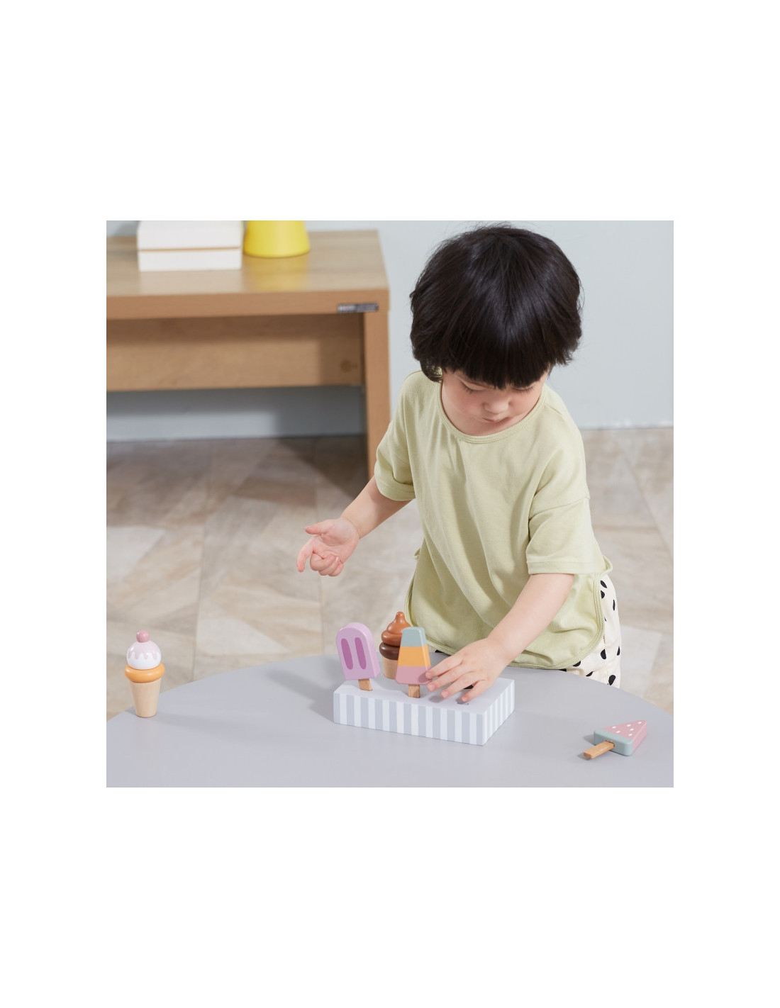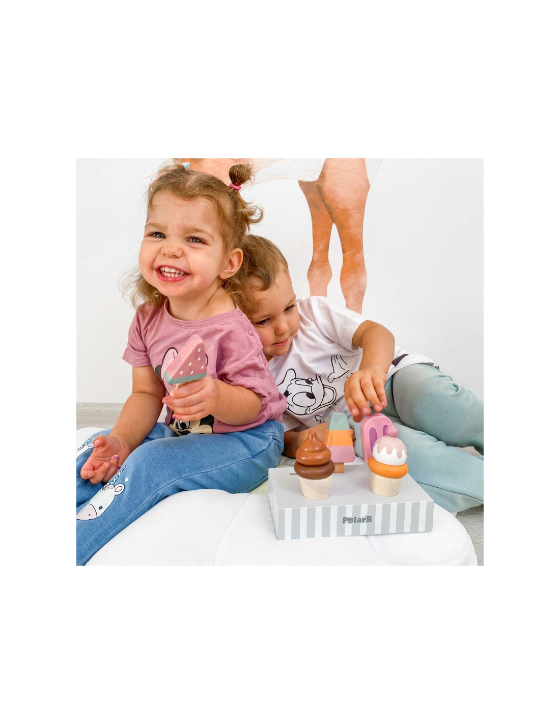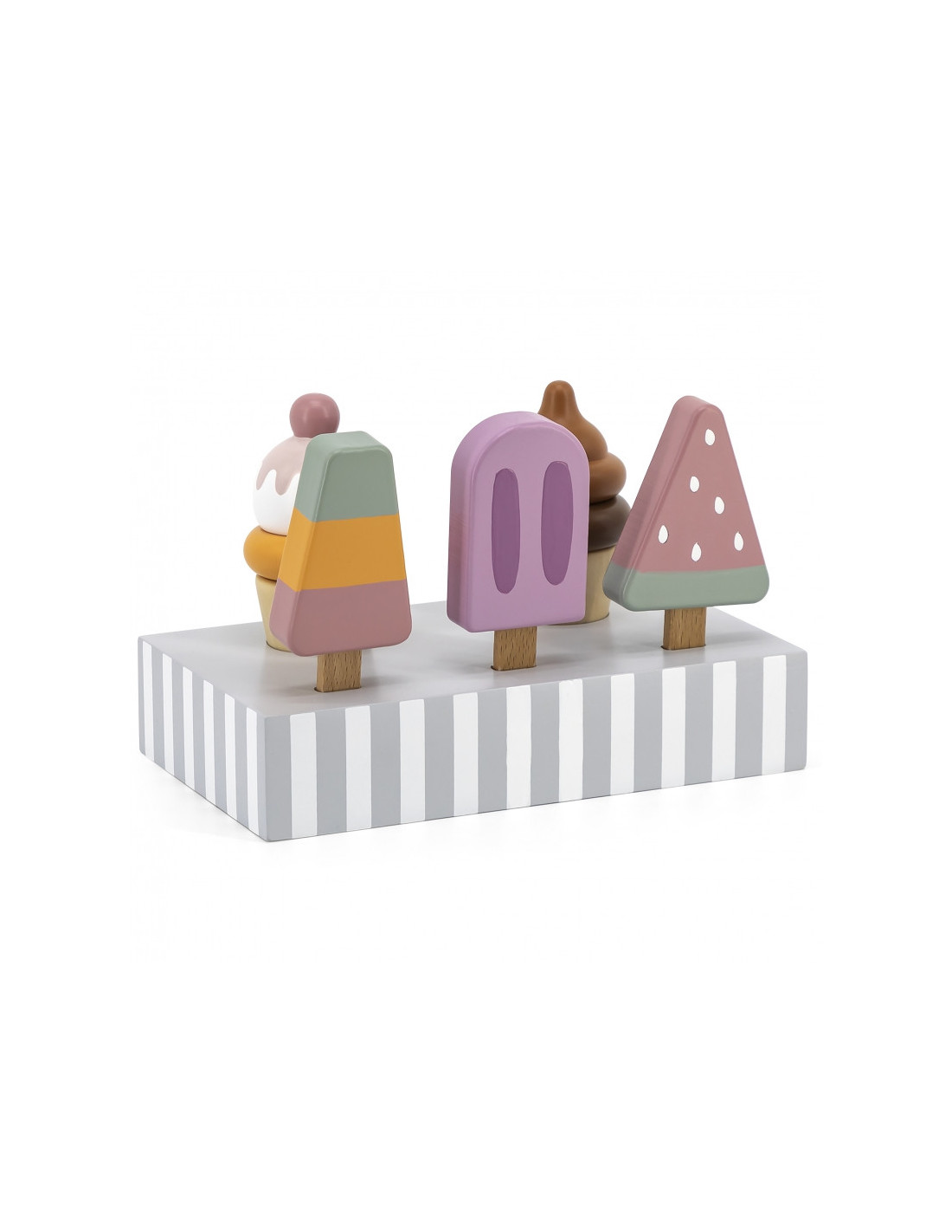 Drewniany zestaw pięciu lodów idealnych na deser w upalny dzień. Lody w pięknej, smakowitej kolorystyce wykonane ze starannością o każdy szczegół. Ten drewniany zestaw świetnie sprawdzi się w zabawie w sklep, jak również jako akcesoria wyposażenia dziecięcej kuchni. Świetna jakość wykonania, urocza kolorystyka, praktyczność i funkcjonalność. Zabawa w dom, zabawa w sklep i naśladowanie ról dorosłych - to kreatywny sposób na kształtowanie relacji społecznych, oraz rozwijanie i poznawanie słownictwa.