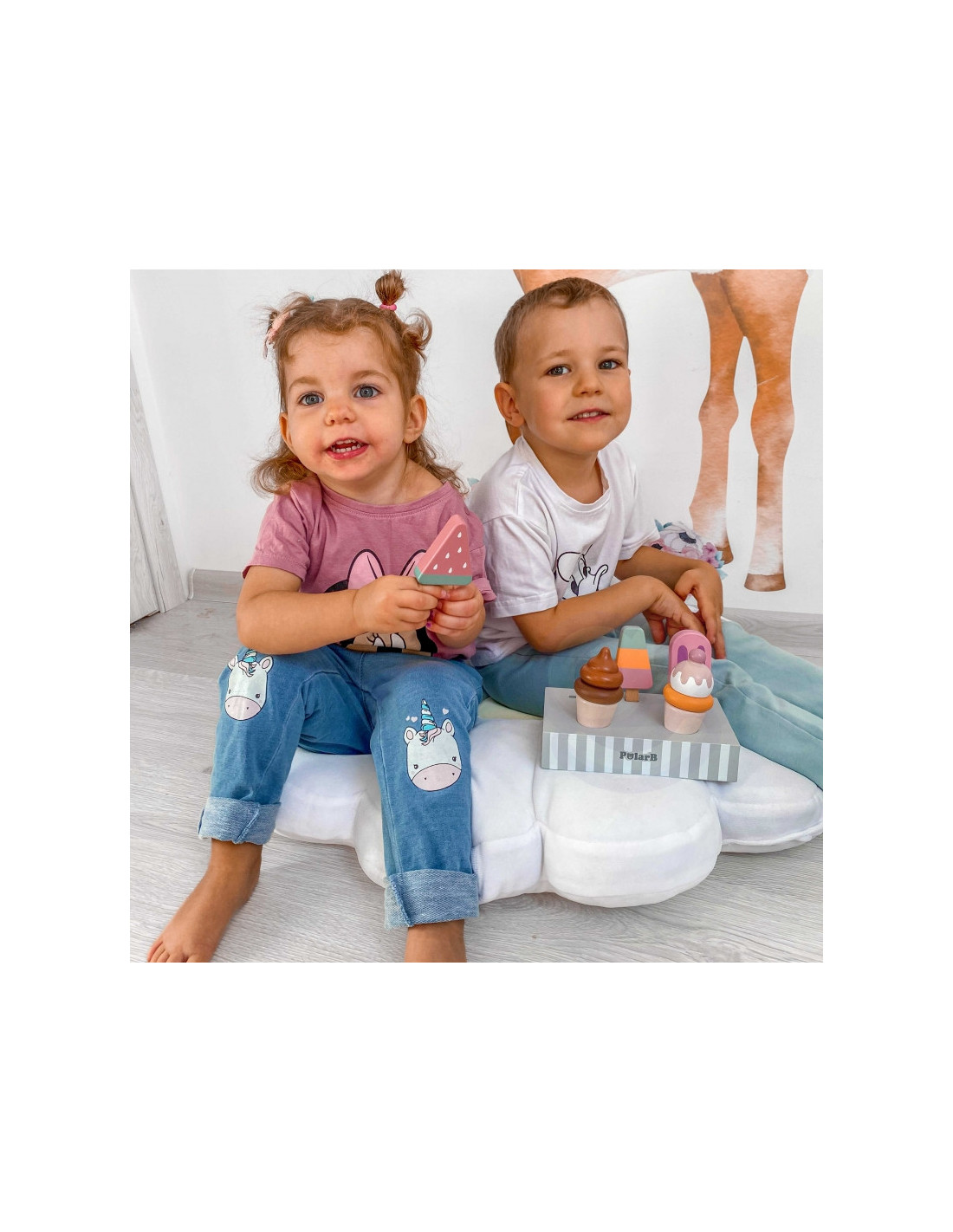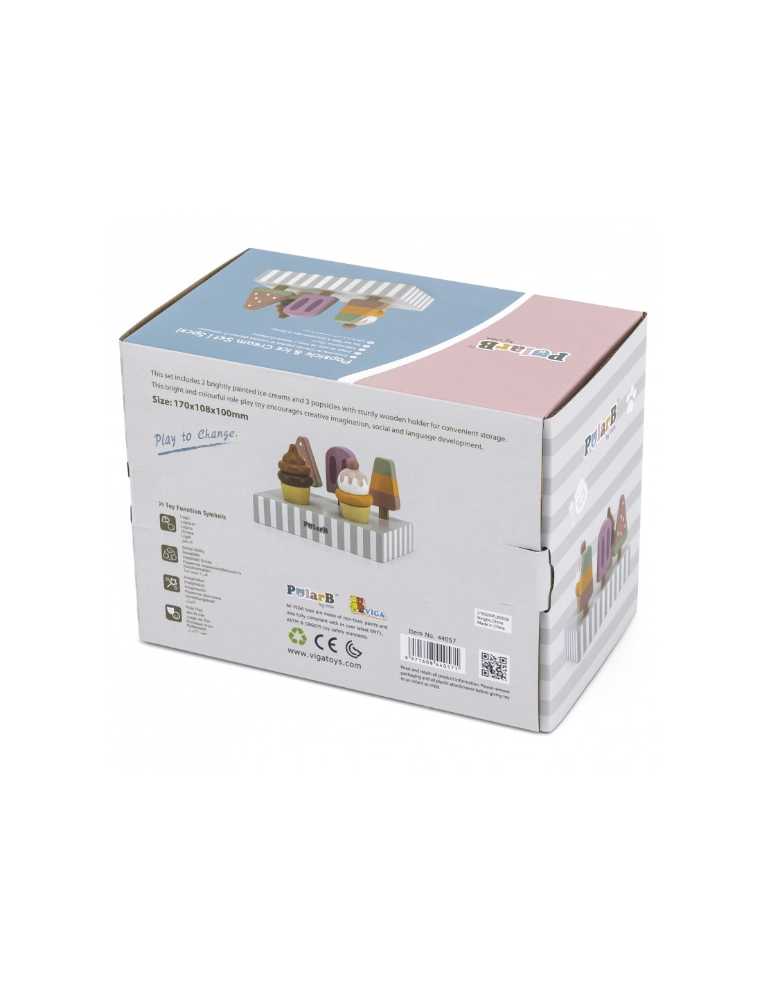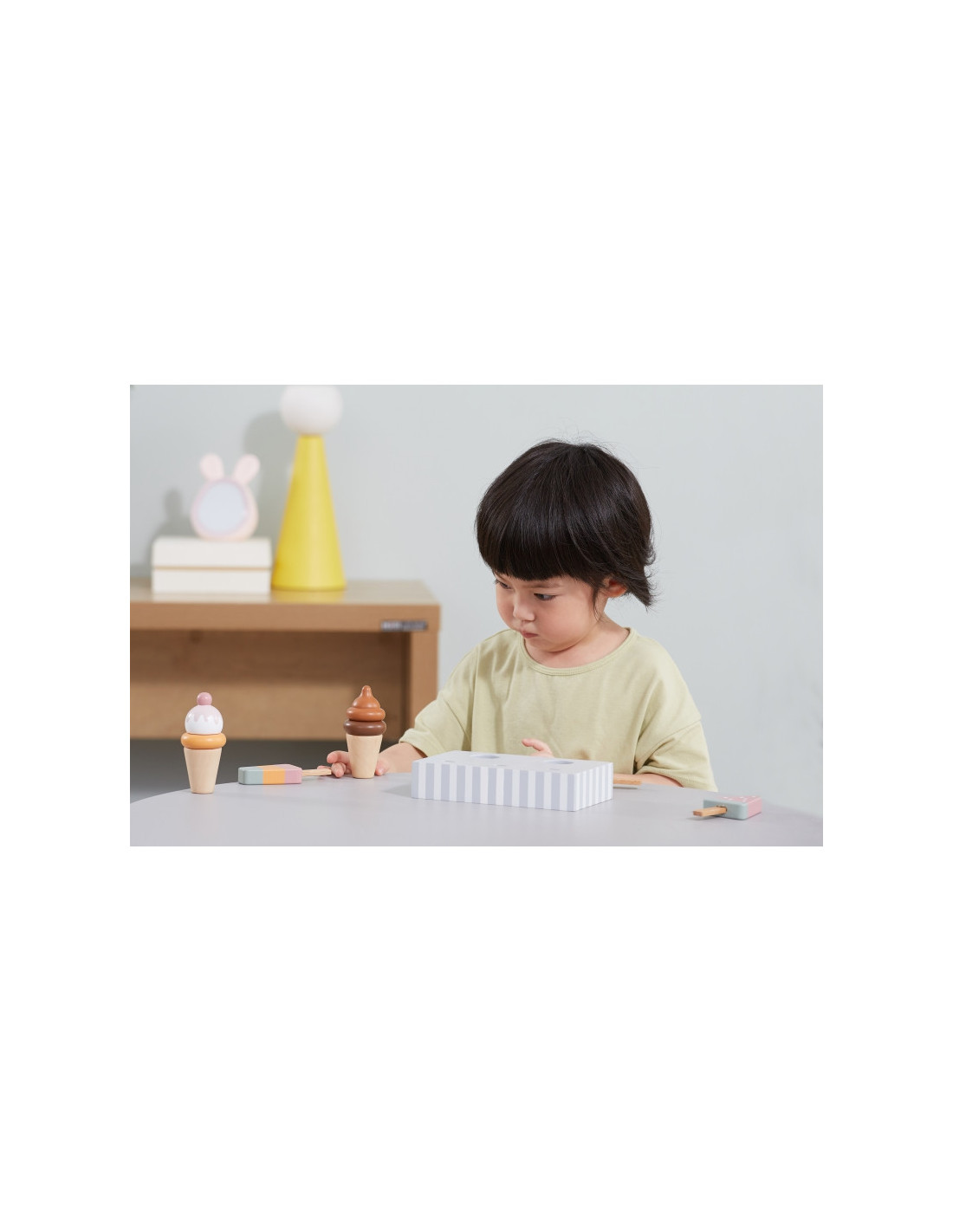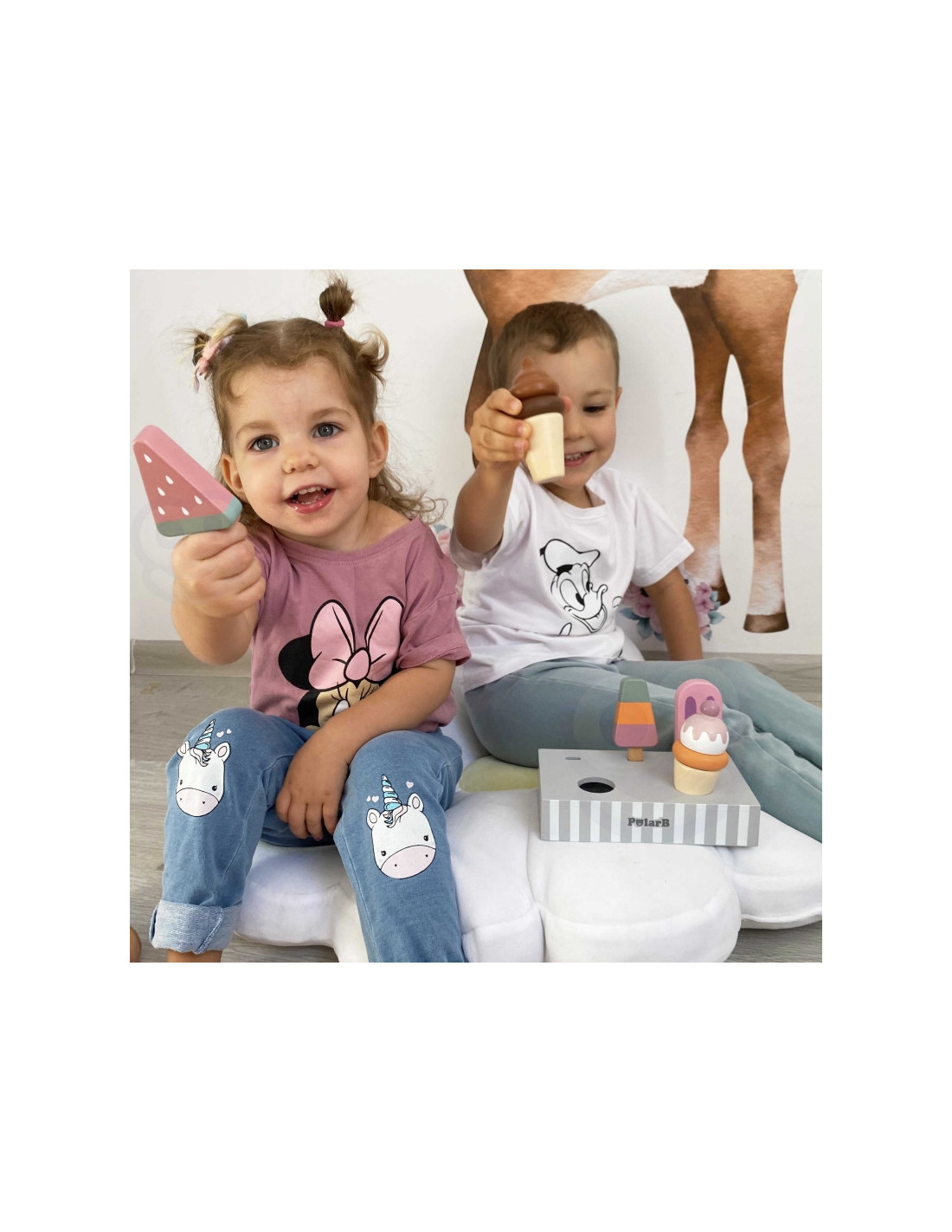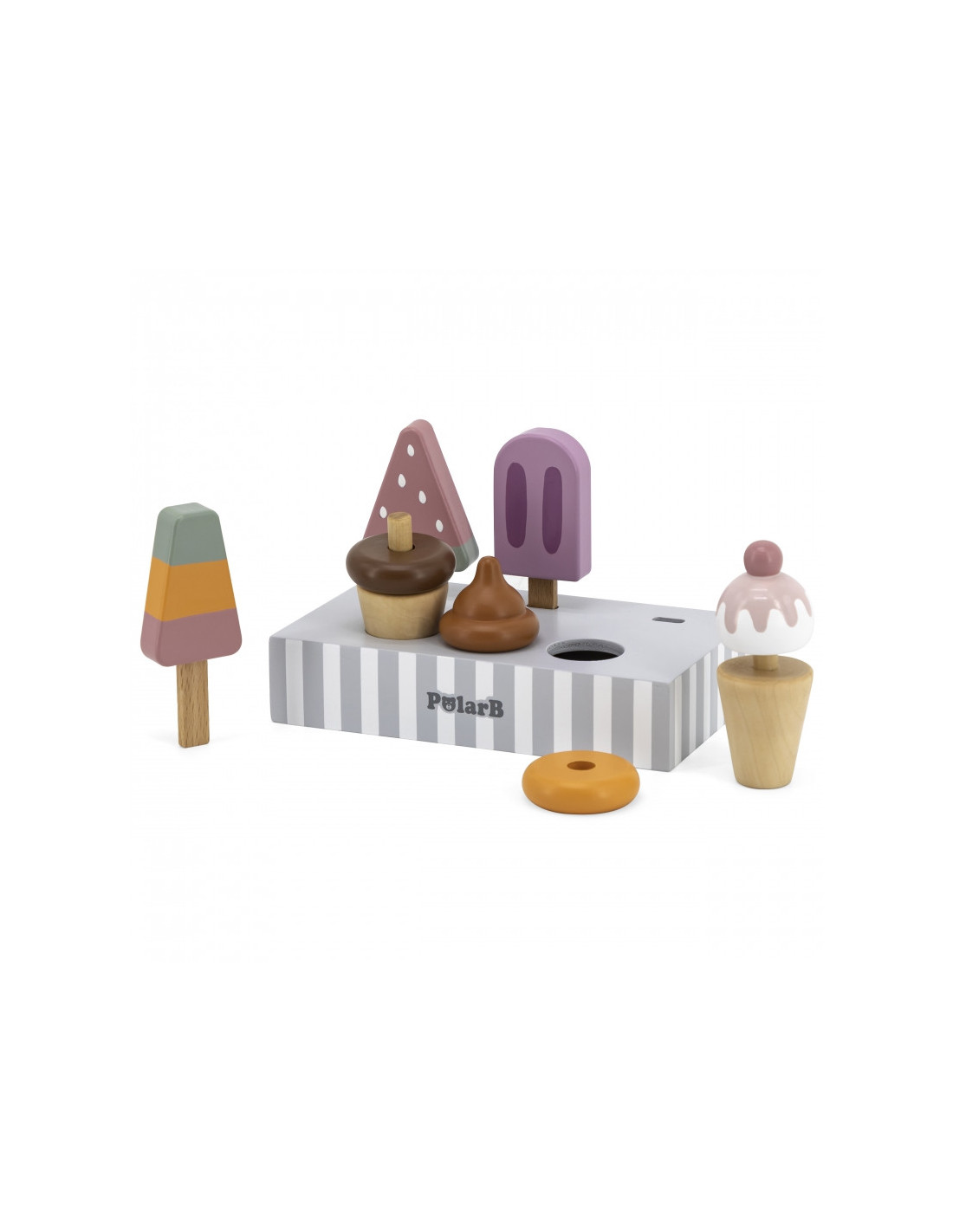 Drewniany zestaw pięciu lodów idealnych na deser w upalny dzień. Lody w pięknej, smakowitej kolorystyce wykonane ze starannością o każdy szczegół. Ten drewniany zestaw świetnie sprawdzi się w zabawie w sklep, jak również jako akcesoria wyposażenia dziecięcej kuchni. Świetna jakość wykonania, urocza kolorystyka, praktyczność i funkcjonalność. Zabawa w dom, zabawa w sklep i naśladowanie ról dorosłych - to kreatywny sposób na kształtowanie relacji społecznych, oraz rozwijanie i poznawanie słownictwa.