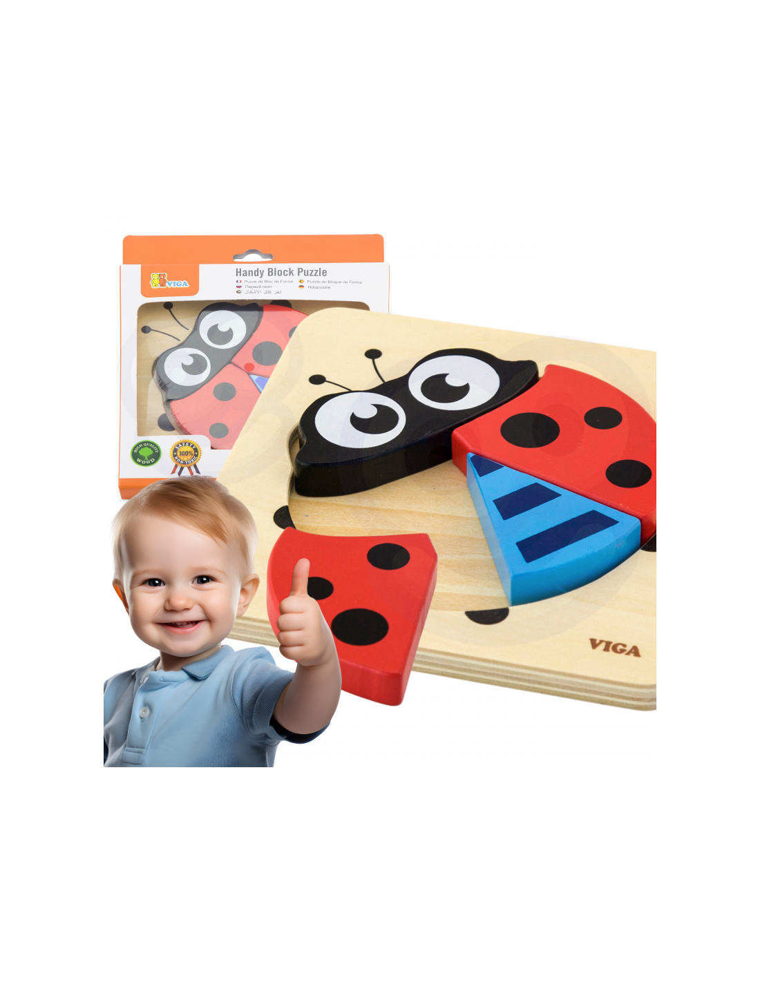 VIGA Pierwsze drewniane Puzzle maluszka Biedronka
