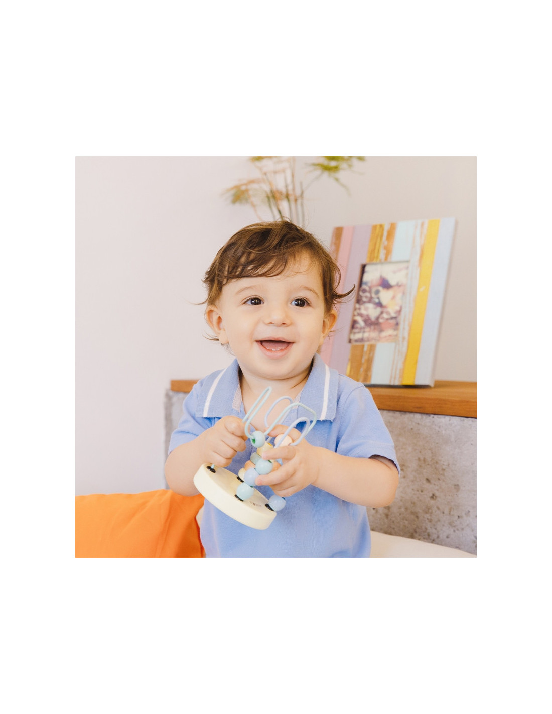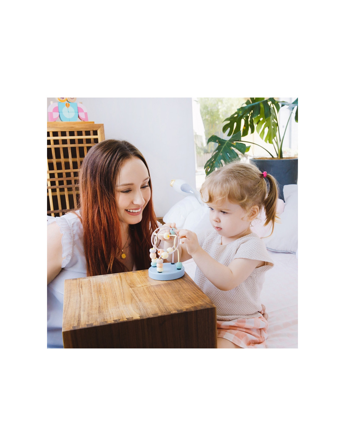 - - Na metalowych kolorowych prętach znajdują się piękne drewniane koraliki, którymi dziecko może przesuwać w dowolny sposób, ćwicząc przy tym precyzję ruchów palców i dłoni.