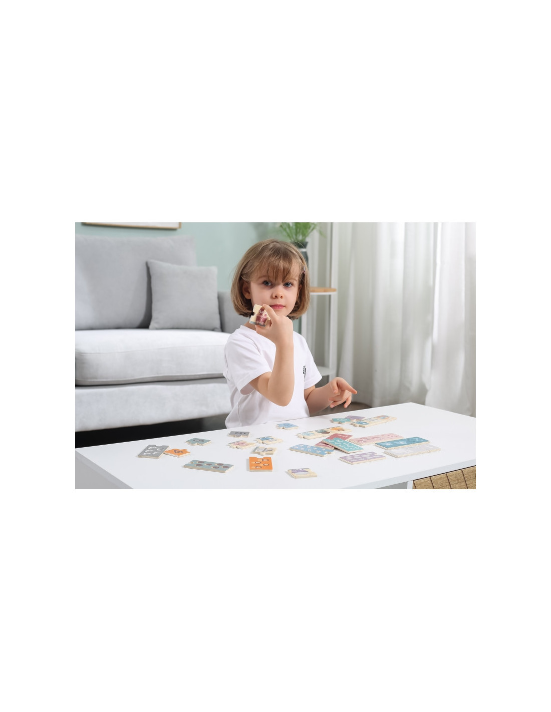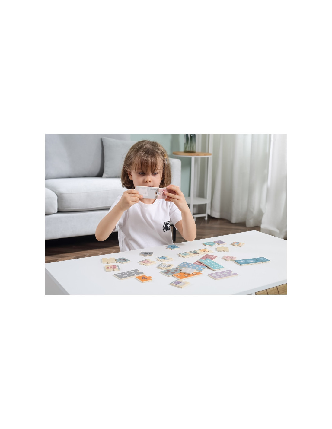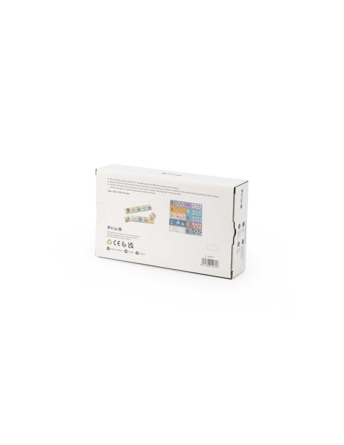 - - zestaw składa się z 31 drewnianych elementów, na których są widoczne różne liczby i zwierzęta,