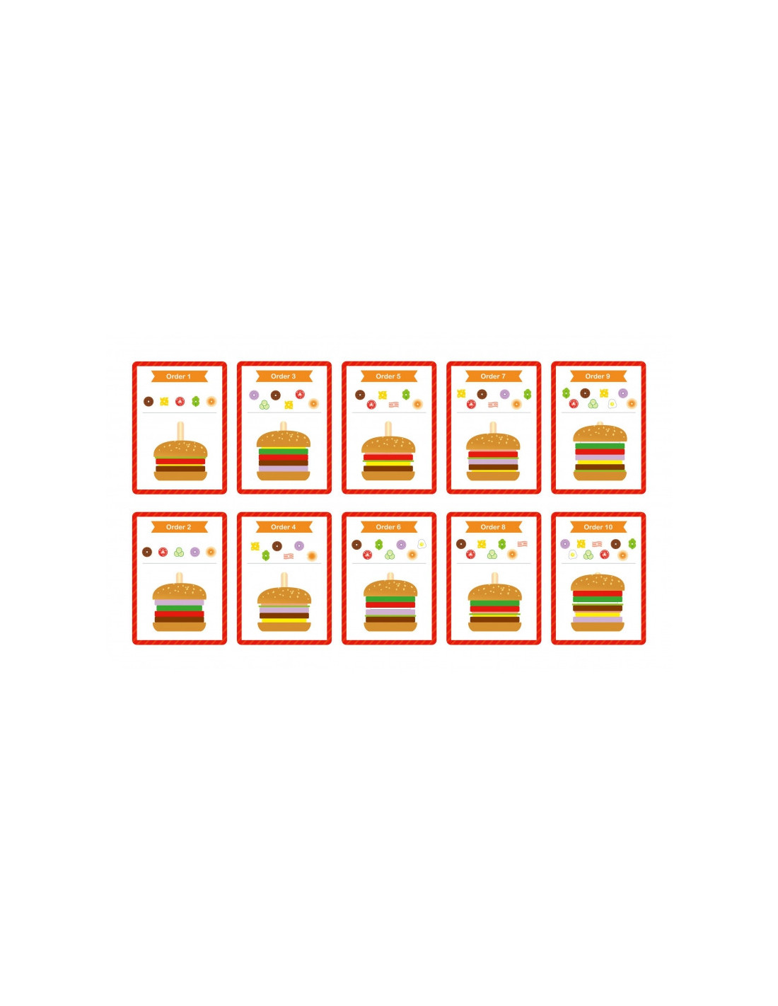 - - 5 kart z 10 wzorami burgerów