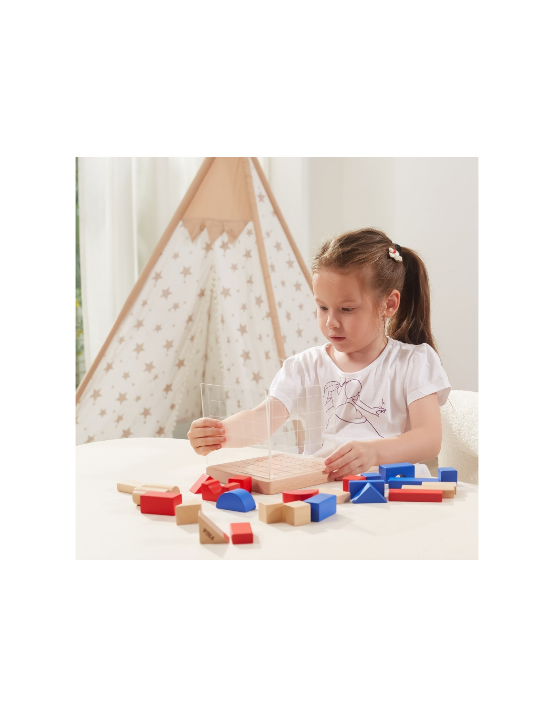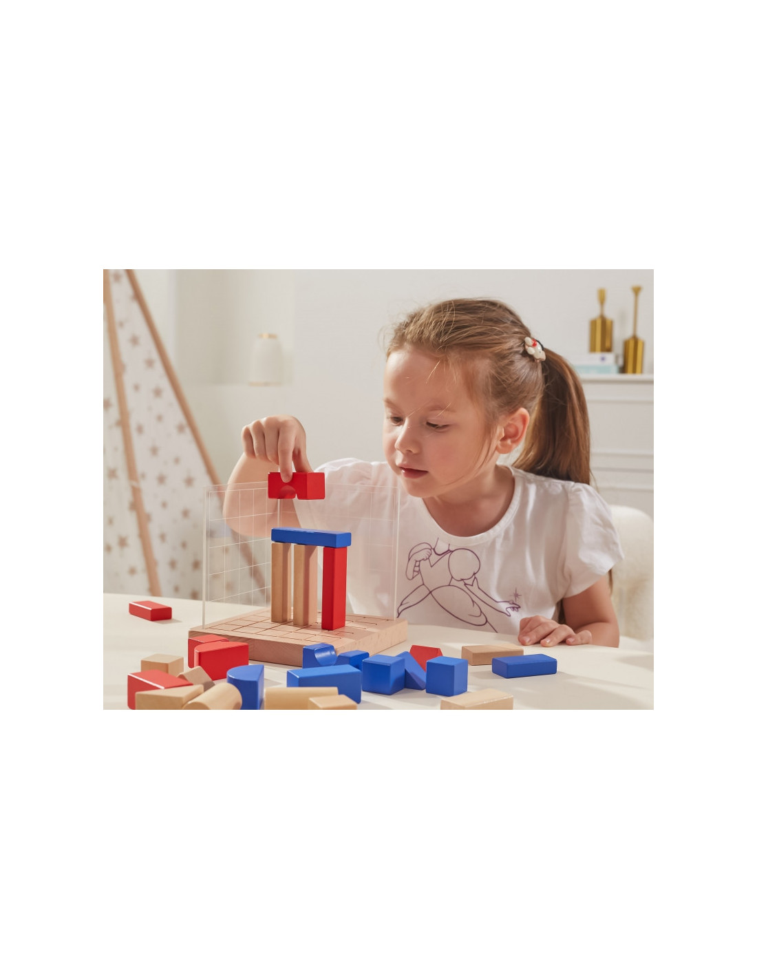 Drewniane klocki konstrukcyjne od firmy Viga Toys to idealna gra dla dzieci od 3 lat. Ta przestrzenna gra przypomina projektowanie 3D, zapewniając godziny nauki poprzez fascynującą zabawę zgodnie z nurtem Montessori. Gra wymaga od graczy skonstruowania budowli przy akrylowych panelach tworząc efekt 3D. Do zestawu dołączona jest książeczka z propozycjami ułożenia klocków propozycje te mają różny poziom trudności wspierając rozwój dziecka, jednocześnie nie ograniczając jego kreatywności.