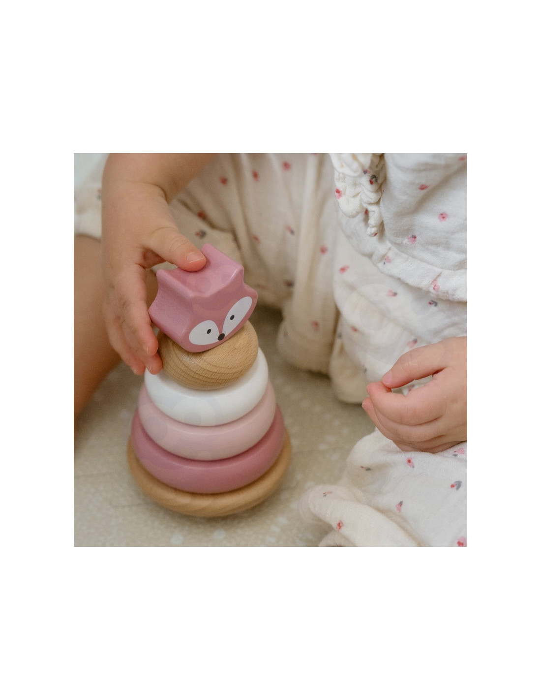 - - Pastelowy zestaw posiada 6 sztuk krążków-klocków w różnych rozmiarach, w tym jeden w kształcie główki Liska