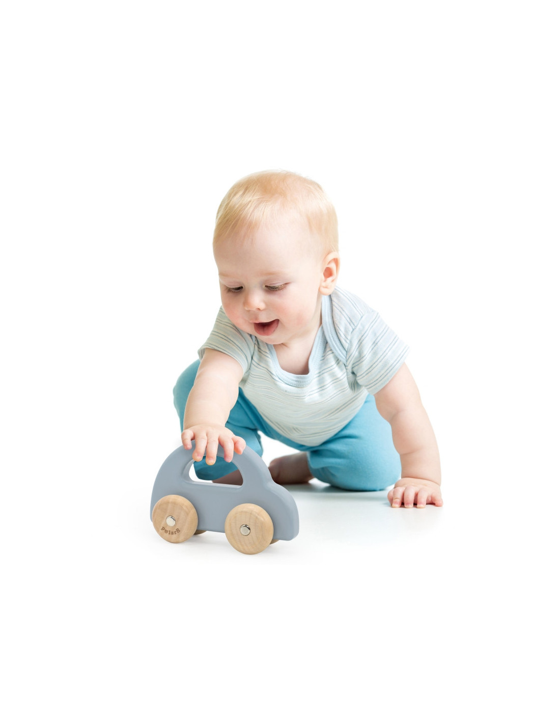 Drewniane Autko do Pchania od marki VIGA będzie pierwszym ulubionym pojazdem Twojego Dziecka. Samochodzik posiada prostą, pastelową budowę, która na pewno spodoba się dziecku. Łatwy i wygodny do chwytania przez małe rączki. Posiada ciche i sprawnie poruszające się kółka. Dziecko pchając pojazd rozwinie swoje zdolności manualne tzw. "małą motorykę - ruch rączek. Posiada zaokrąglone krawędzie bezpieczne dla niemowlaka.