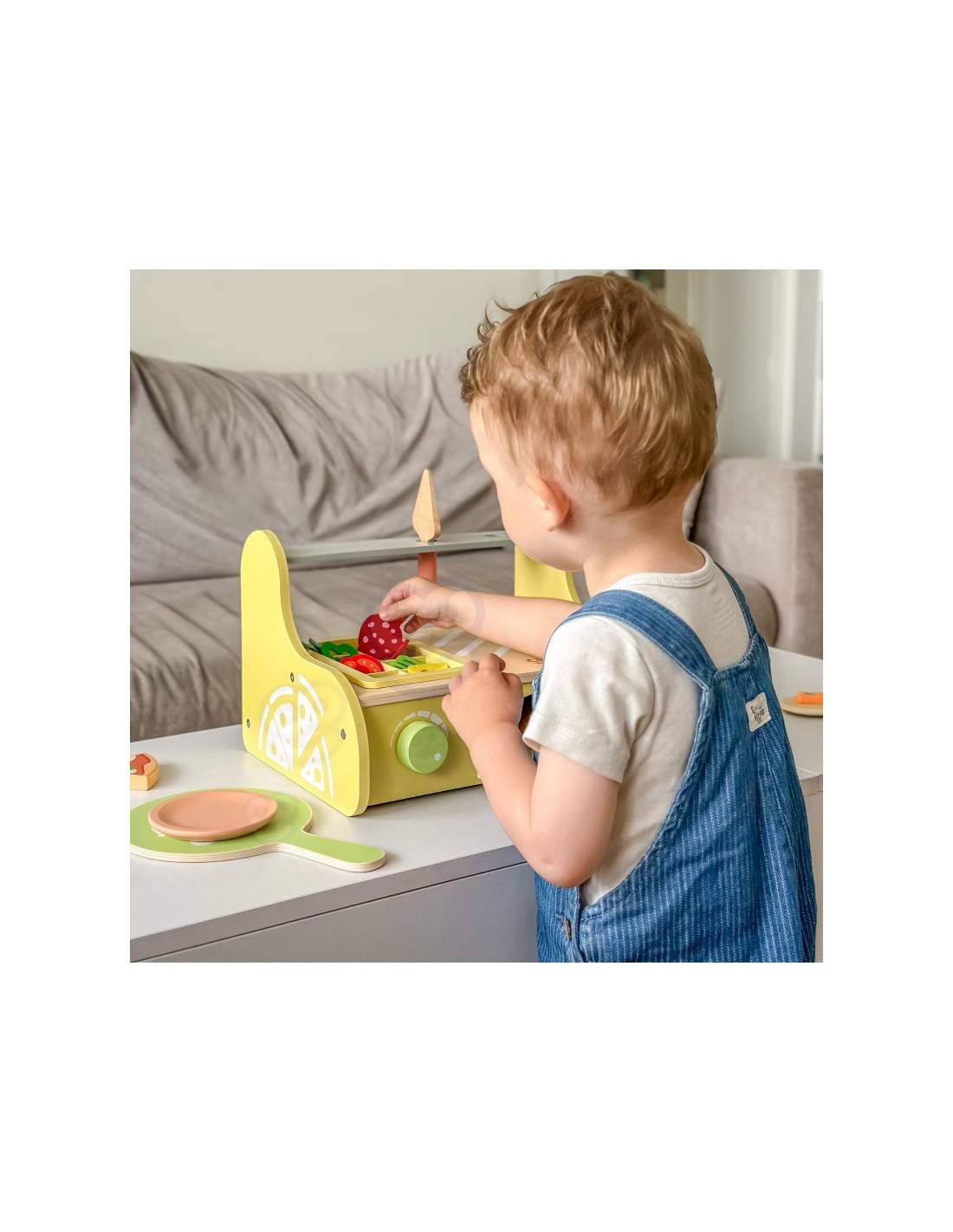 Piękna zabawka do odgrywania ról z motywem pizzy! W zestawie piekarnik, mnóstwo talerzy, mnóstwo dodatków i smaczna pizza! Dzieci uczą się odpowiednich technik gotowania i doskonalą swoje umiejętności motoryczne.