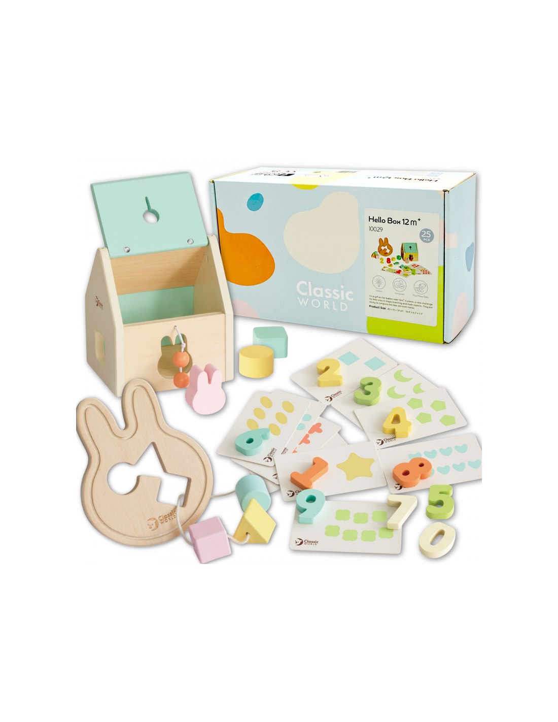 Ten wyjątkowy Powitalny BOX do nauki od renomowanej marki CLASSIC WORLD to idealny zestaw upominkowy dla każdego malucha! Wykorzystuje naturalną ciekawość świata dziecka, oferując zróżnicowane i angażujące zabawki. W zestawie znajdziesz sorter, układanki do nauki liczenia, klocki oraz uroczą zabawkę do przewlekania w kształcie królika. To kompletny pakiet, który w jednym pudełku wspiera wszechstronny rozwój dziecka, doskonaląc umiejętności motoryczne i eksplorację wizualną.