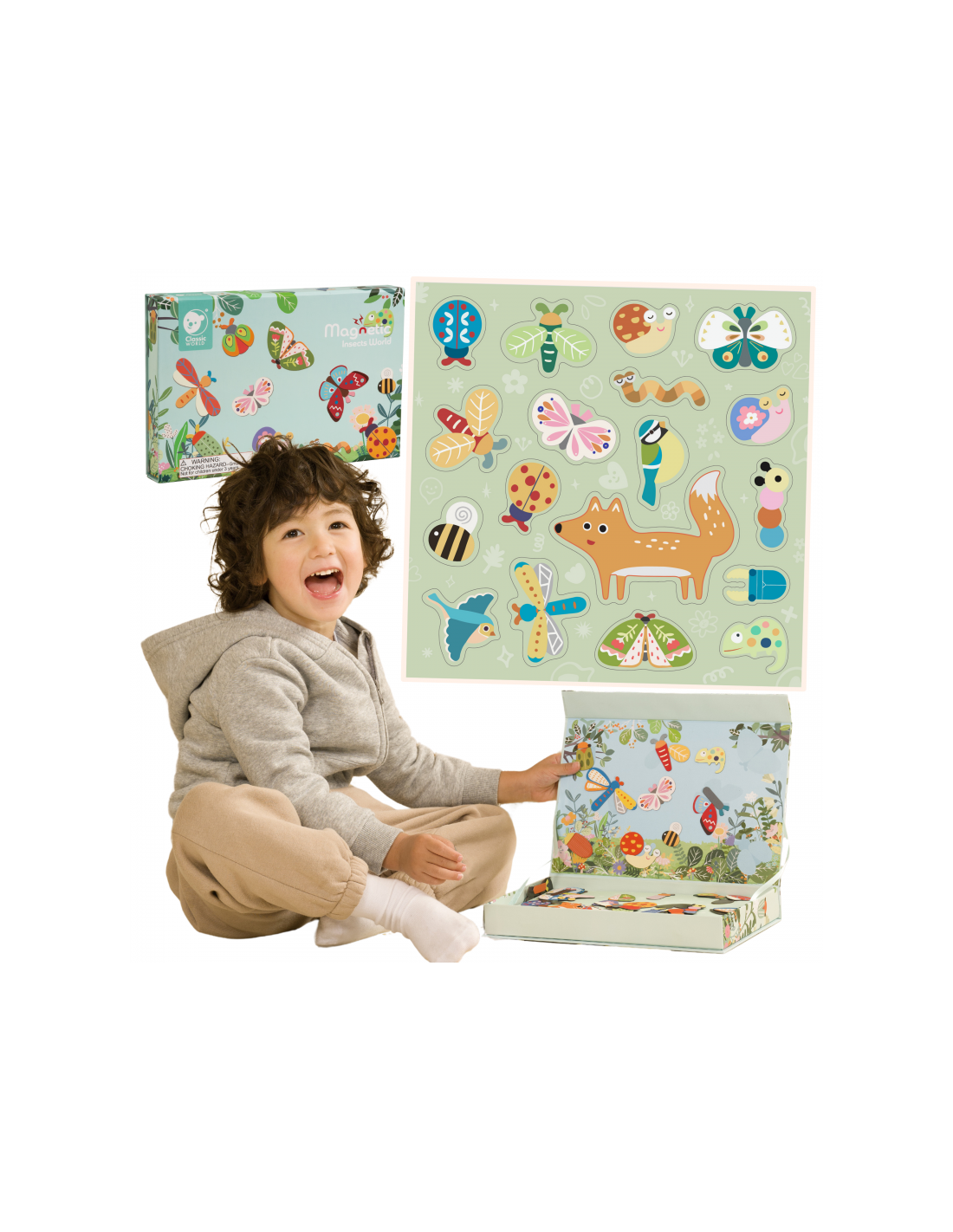 CLASSIC WORLD Układanka - to magnetyczny zestaw puzzli, który pomaga w nauce i rozpoznawaniu różnorodności zwierząt, które można znaleźć na łące! Dzięki każdemu z 18 prezentowanych zwierząt, dziecko może układać karty na tablicy magnetycznej i tworzyć własne historie. Gra rozwinie wyobraźnię, zdolności motoryczne i obserwację dziecka. Świetny sposób na spędzenie czasu w domu i nauczenie się nowych rzeczy.