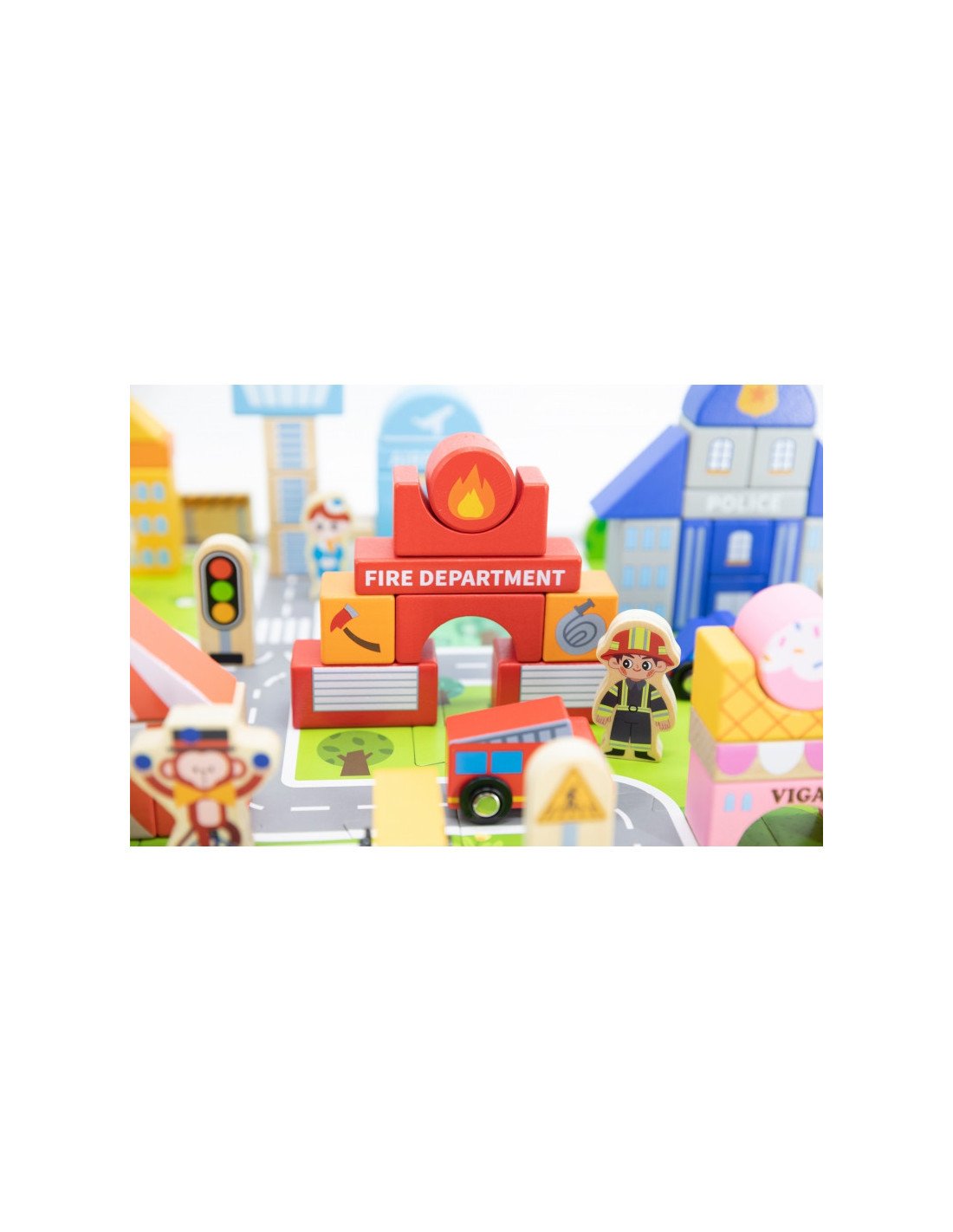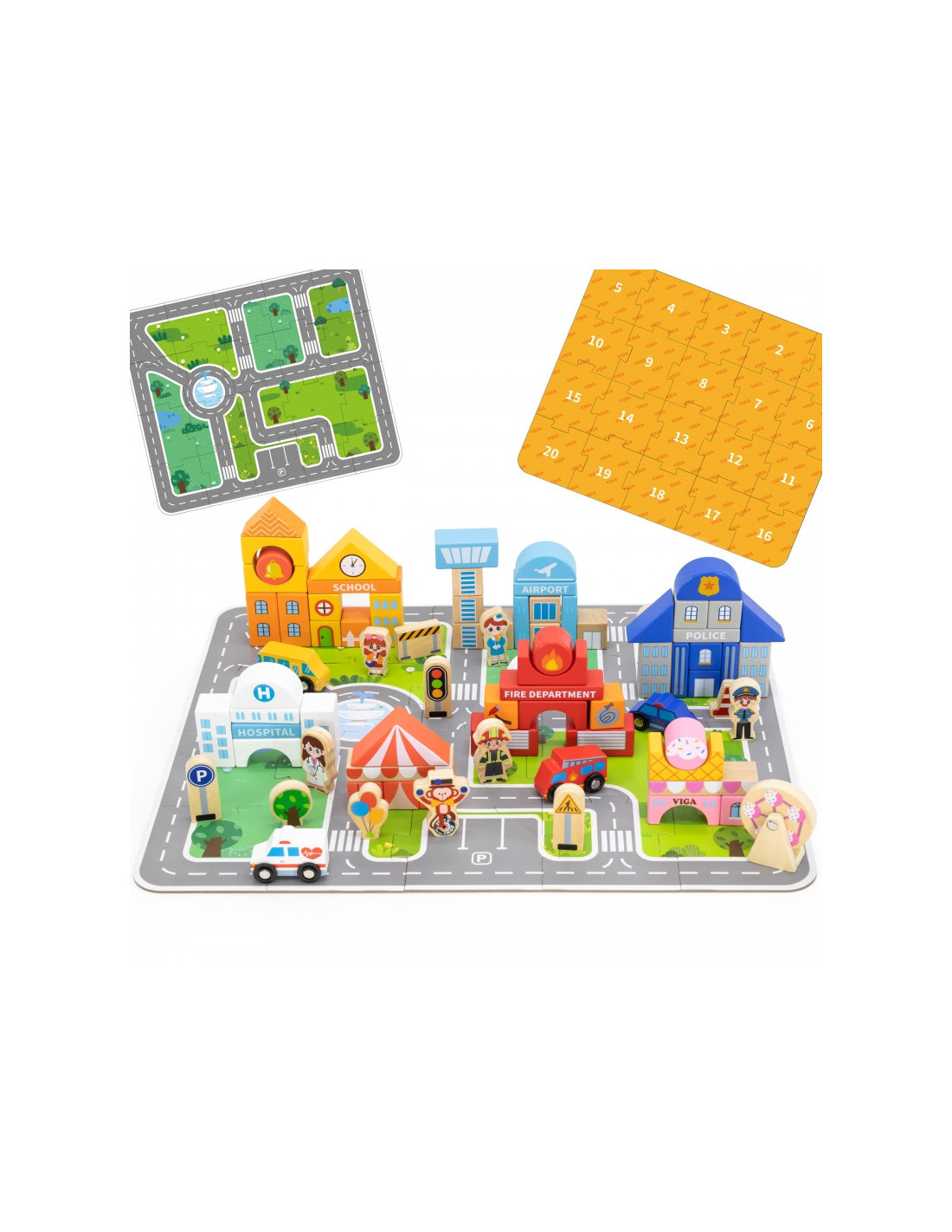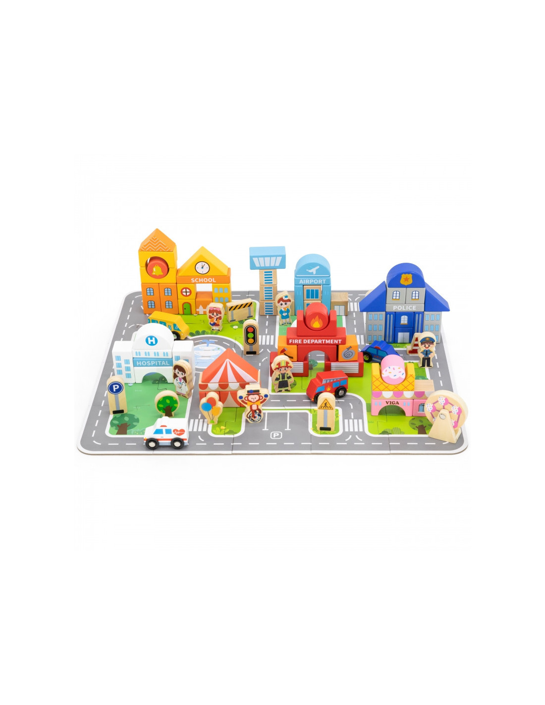 VIGA Zestaw Drewniany Budowanie Miasta Klocki Plansza Figurki