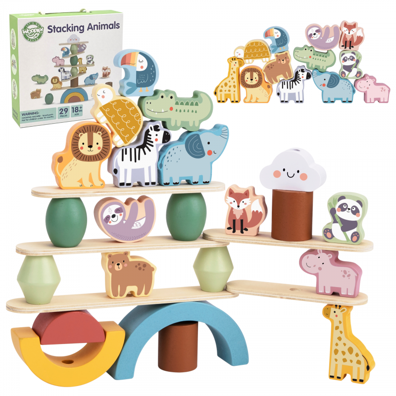 Oto wyjątkowa drewniana układanka od WOOPIE GREEN – idealna już od 18 miesiąca życia! Zestaw zawiera 29 elementów: urocze zwierzątka i akcesoria do balansowania, które pozwalają dzieciom tworzyć niepowtarzalne konstrukcje. Wspiera rozwój i daje mnóstwo kreatywnej zabawy – bez elektroniki i hałasu