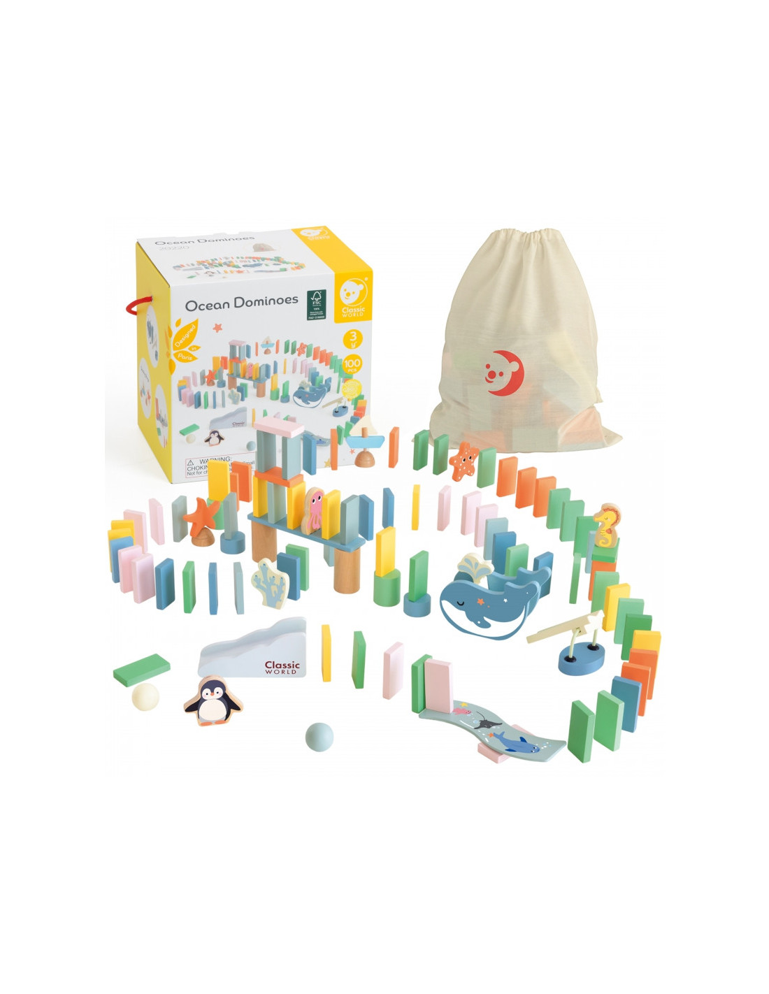 Ożyw ocean dzięki tym zabawnym i edukacyjnym domino od marki CLASSIC WORLD. Każda kostka przedstawia jedno z najbardziej lubianych stworzeń morskich, co czyni je doskonałym narzędziem do nauki liczenia oraz odkrywania cudów podwodnego świata przez najmłodszych.