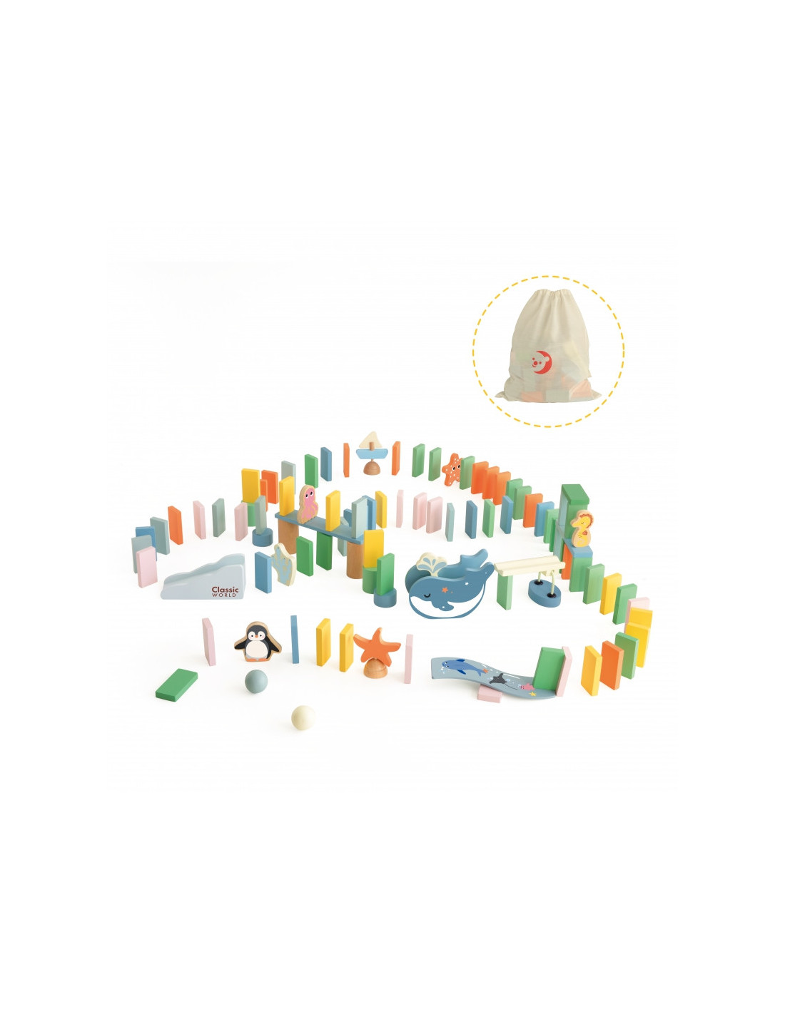 CLASSIC WORLD Drewniane Domino Tor Logiczny Przeszkód Układanka Montessori 100 el.