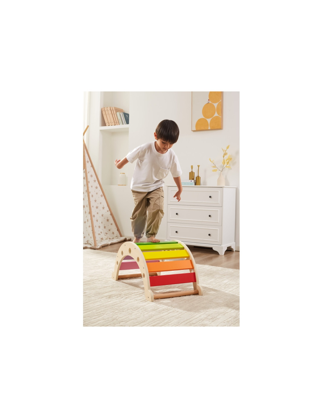 VIGA Drewniany Bujak Mostek 2w1 Huśtawka Montessori Tęczowa