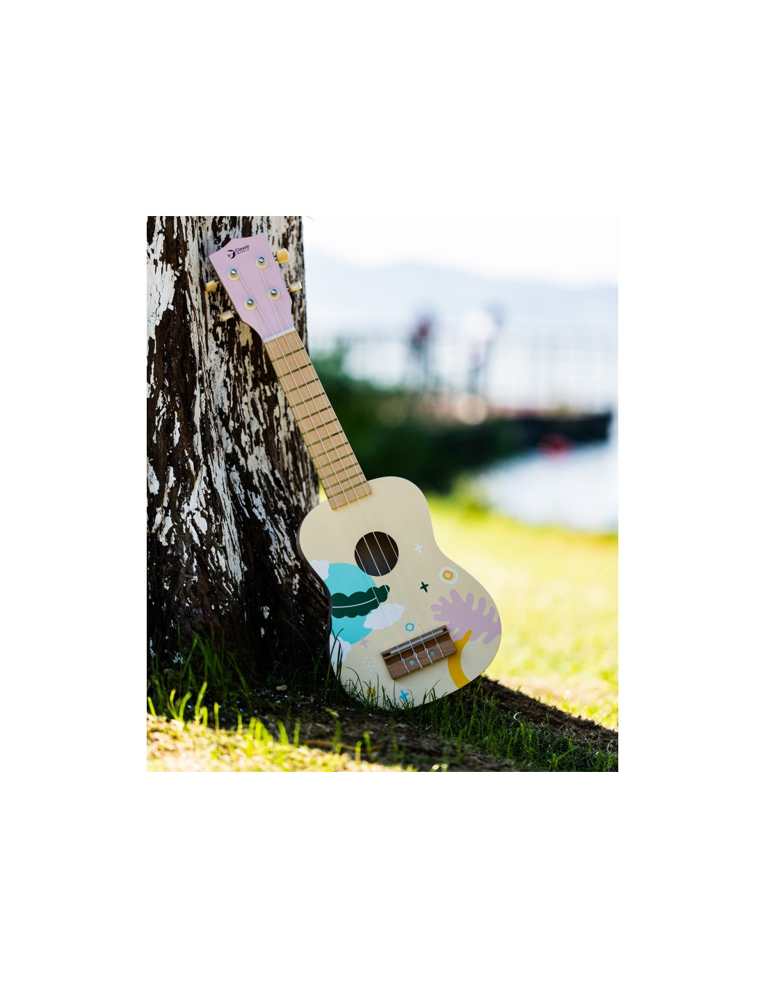 - - Różowe drewniane ukulele od renomowanej marki Classic World dla młodych muzyków.