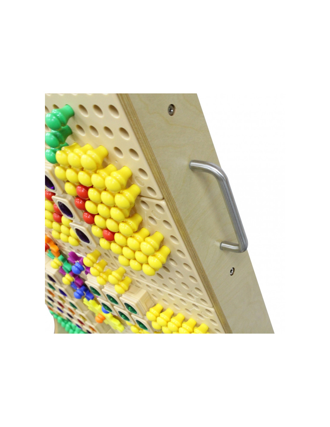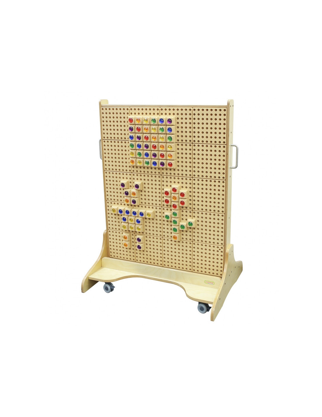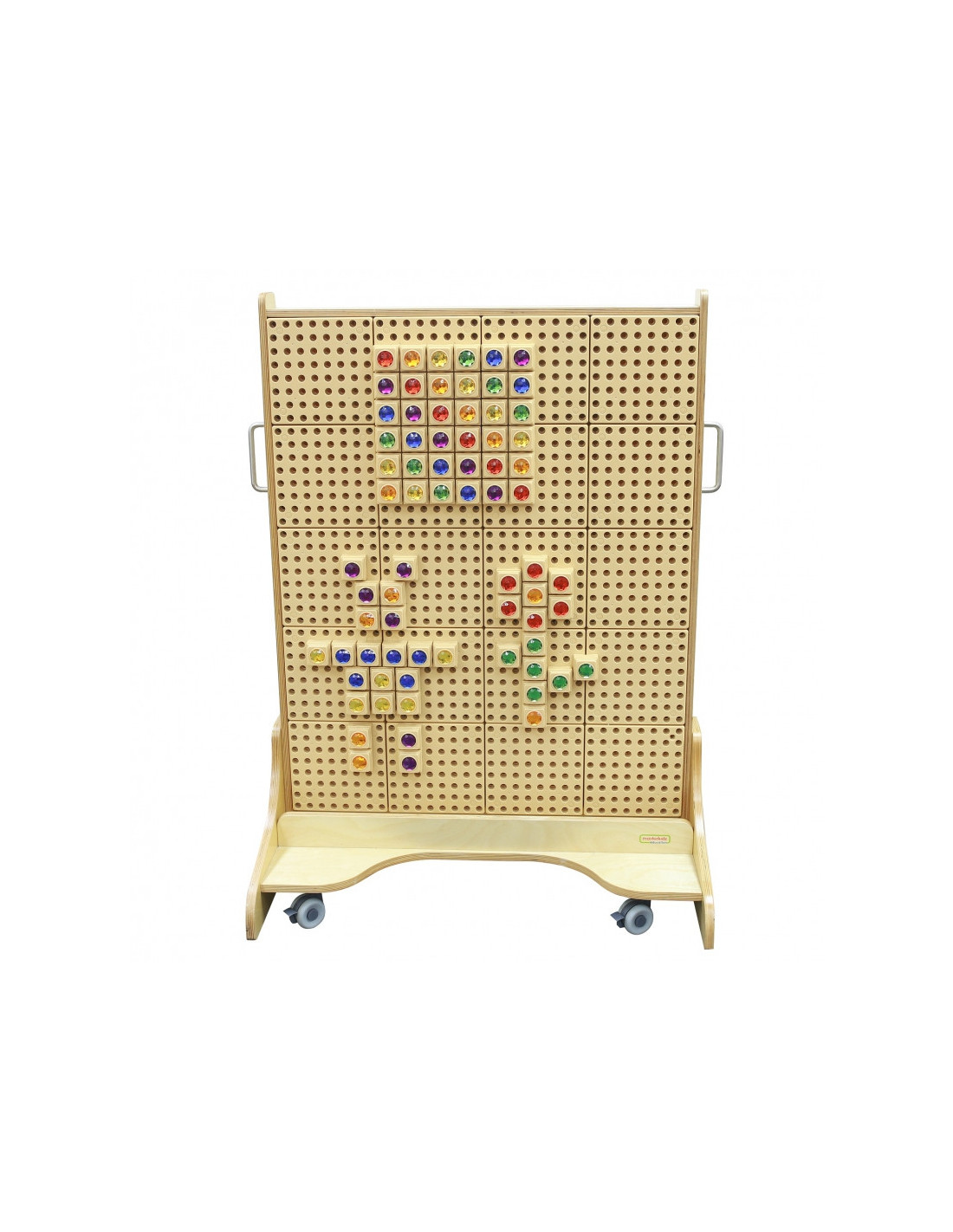 Tablica manipulacyjna STEM to wielofunkcyjna, mobilna ściana aktywności przeznaczona do edukacji i zabawy dla dzieci. Składa się z solidnej, drewnianej konstrukcji z perforowanymi panelami, które umożliwiają łatwe mocowanie różnorodnych elementów edukacyjnych i manipulacyjnych.