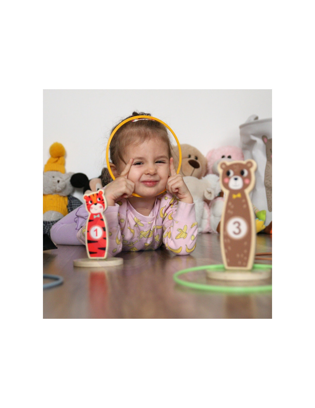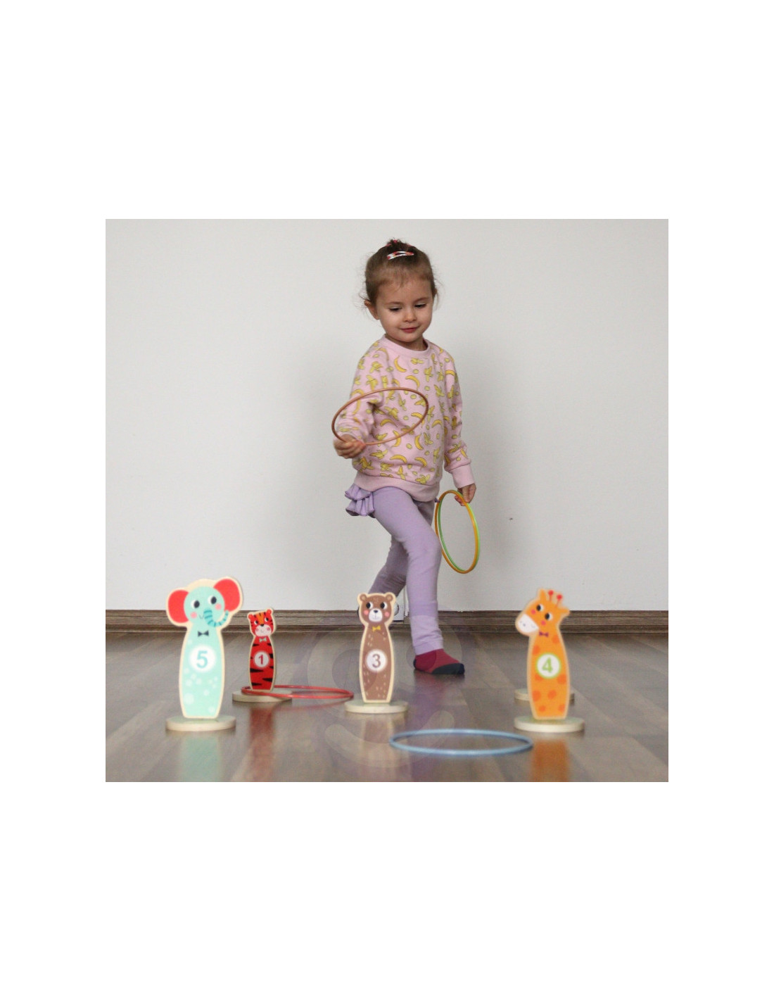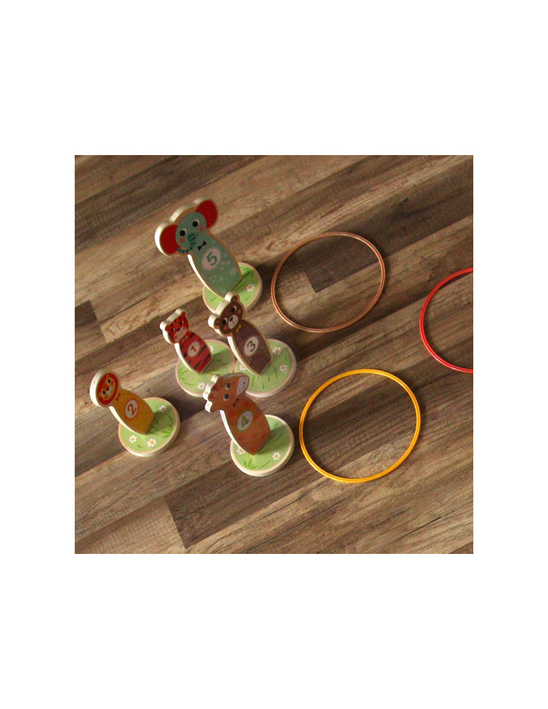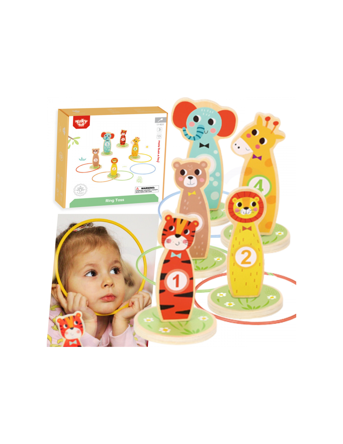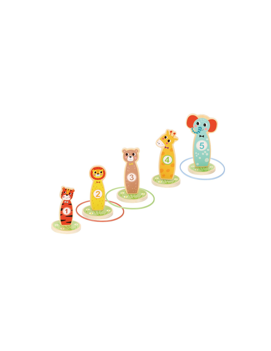 Tooky Toy Drewniana Gra Zręcznościowa Rzut do Celu - Ta zabawna gra zręcznościowa jest idealną rozrywką dla dzieci. W miarę postępów w grze jest możliwość zwiększenia poziomu trudności, umieszczając kołki dalej. Zestaw składa się z 5 uroczych kołków na kółkach w kształcie zwierzątek i 5 kółeczek do rzucania. Nadaje się do zabawy w domu i na zewnątrz. Możliwość gry samemu, jak również w towarzystwie.