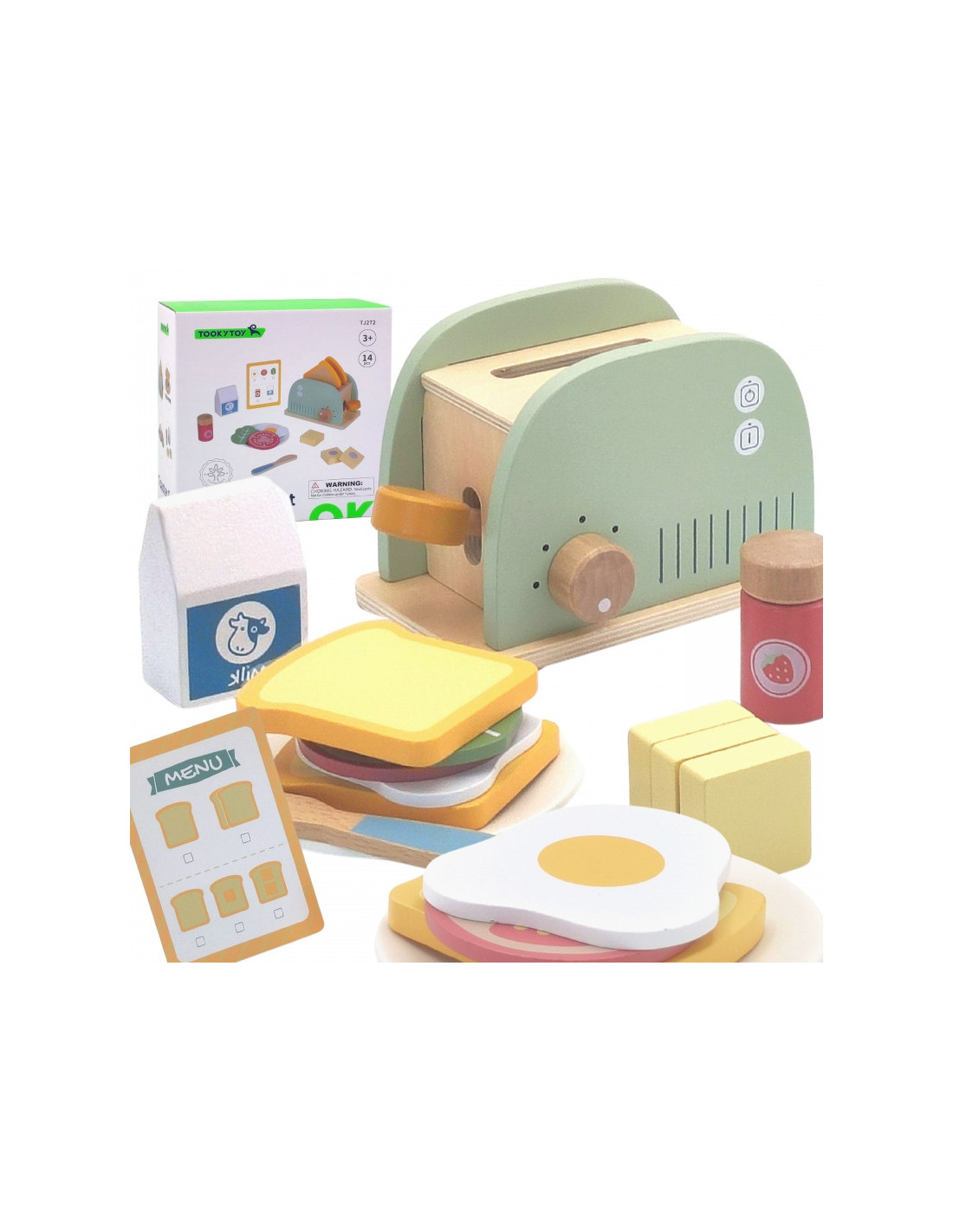 TOOKY TOY Toster Drewniany Pastelowy Zestaw Śniadaniowy