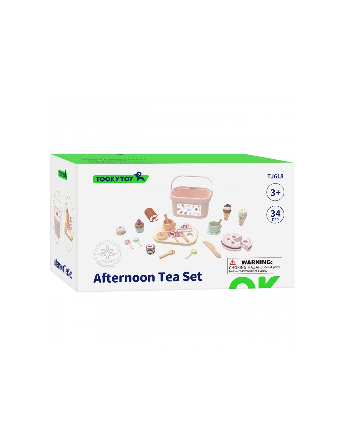 Sweet Cake to drewniany zestaw słodkości od Tooky Toy, doskonały do kreatywnej zabawy podczas przyjęć. Zawartość tego plastikowego pudełka obejmuje piękny tort i roladę, które można kroić, dwie urocze filiżanki na herbatę, ciastka, pączki, lody, lizaki oraz elegancka tacę do podawania tych pyszności. To kompleksowe wyposażenia pozwala na zorganizowanie uroczystego przyjęcia urodzinowego lub innego wyjątkowego spotkania z przyjaciółmi. Zabawa ze Sweet Cake nie tylko rozwija wyobraźnię dziecka, ale także wspiera rozwój umiejętności manualnych. Używając tego zestawu, maluchy mogą wcielać się w rolę małych cukierników cieszyć się tworzeniem niezapomnianych chwil podczas wspólnych spotkań.