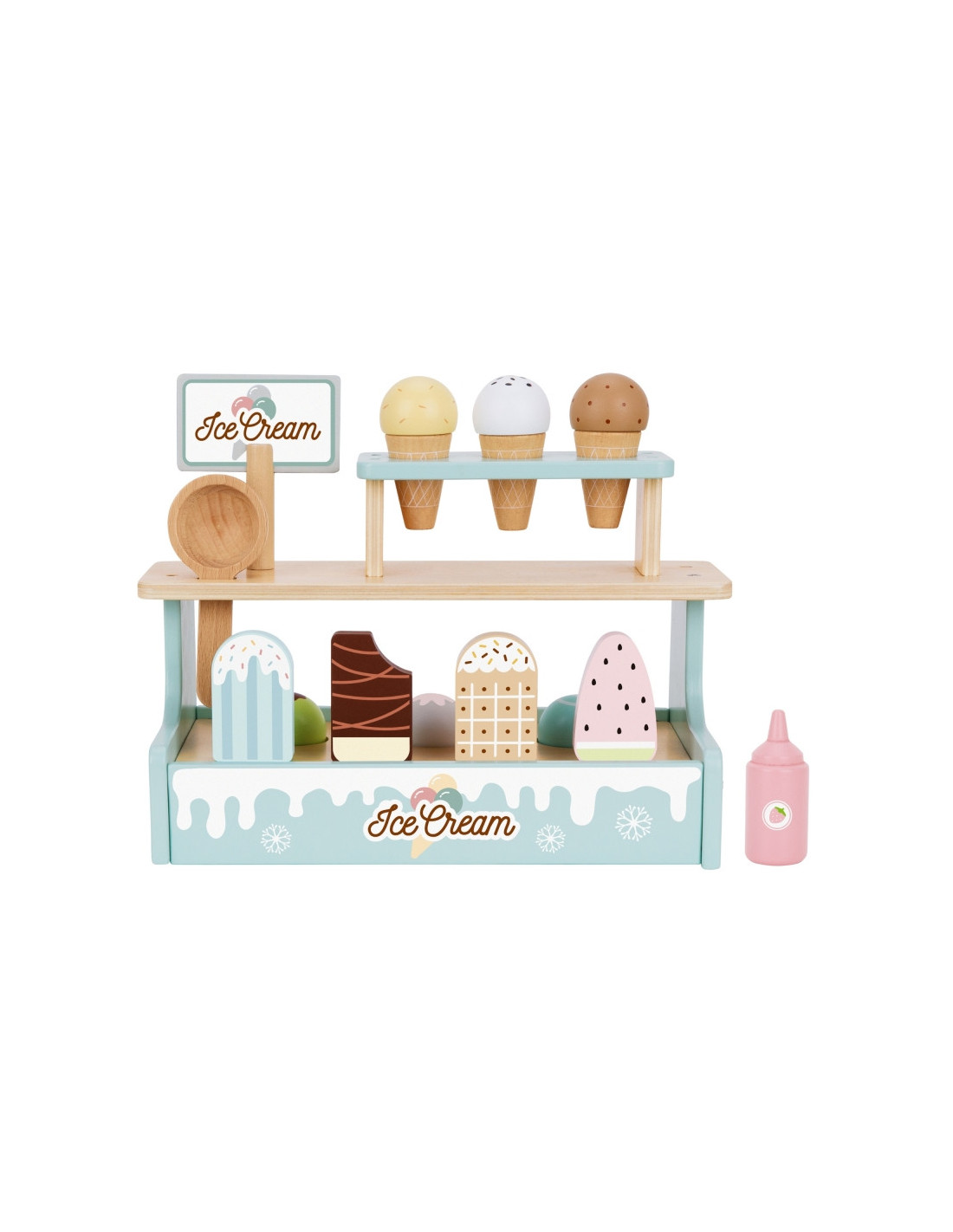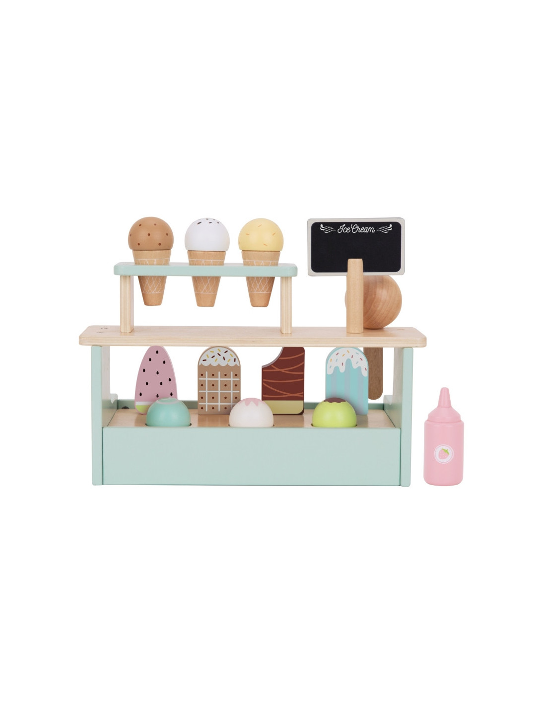 WOOPIE GREEN Drewniana Lodziarnia Sklepik Zestaw z Lodami Stragan 16 EL