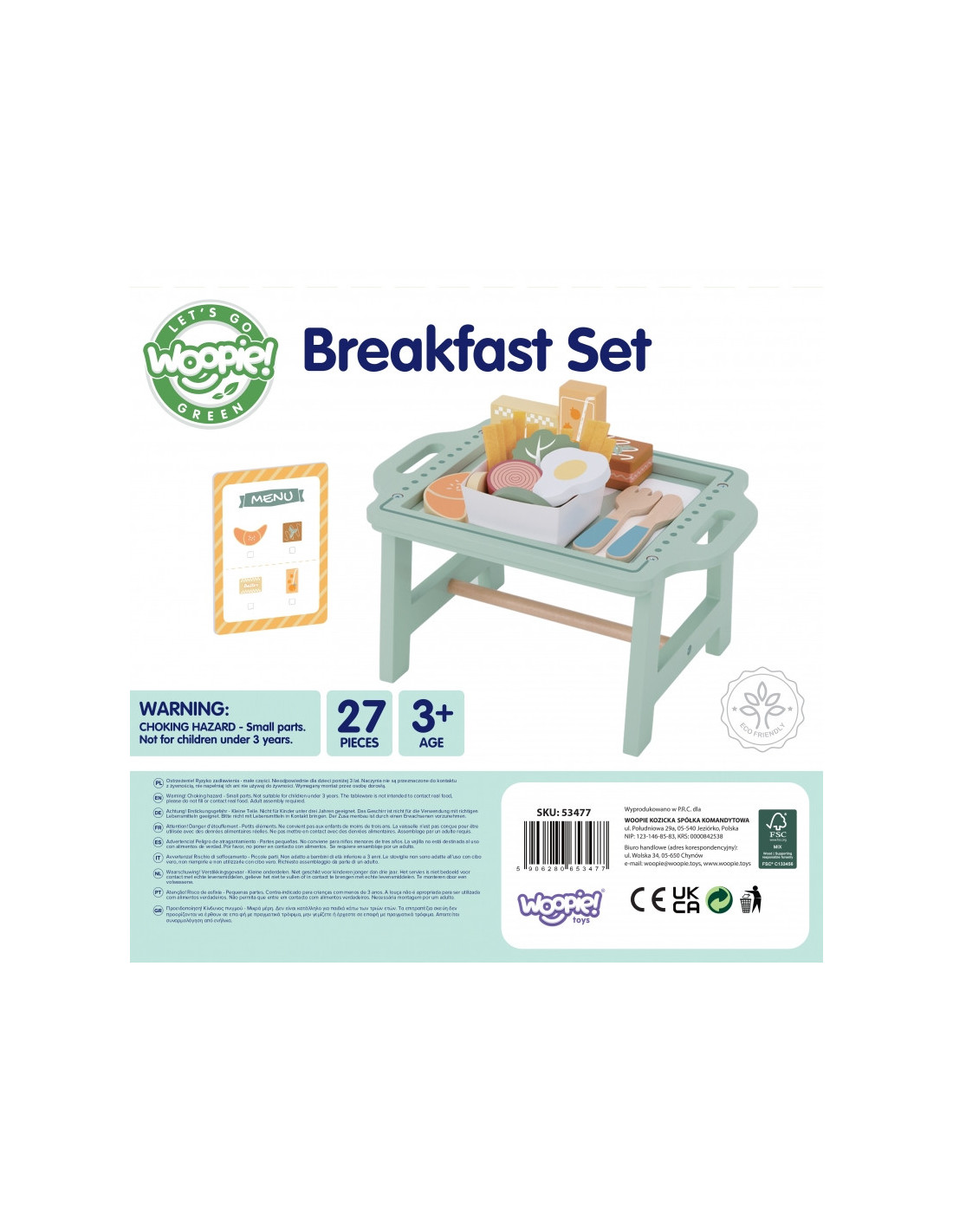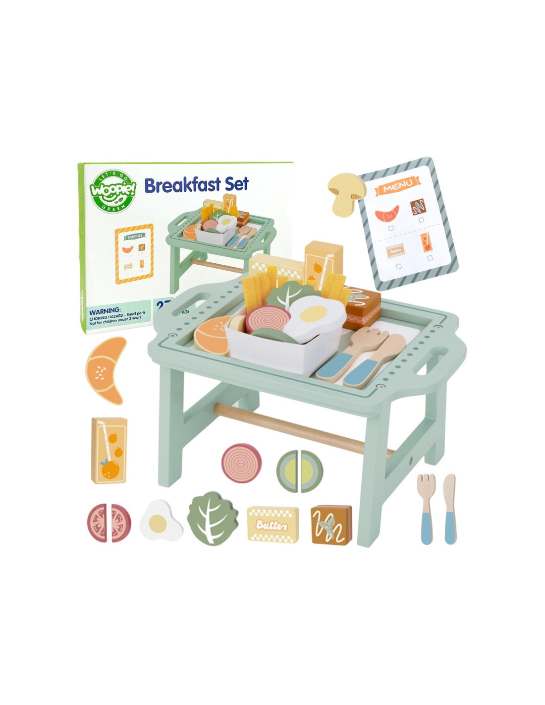 WOOPIE GREEN Zestaw Śniadaniowy i Restauracja – Zabawa w Zamawianie z Tacą i Akcesoriami