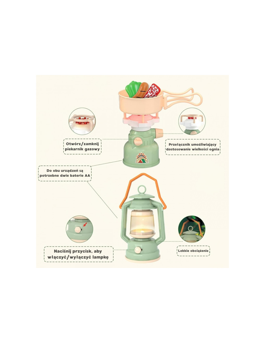 Zestaw przeznaczony jest wyłącznie do zabawy i nie nadaje się do rzeczywistego użytku kempingowego.